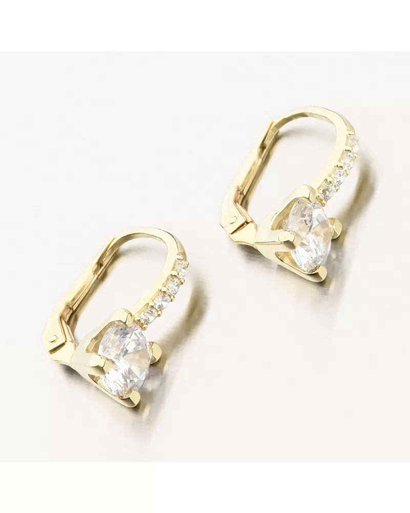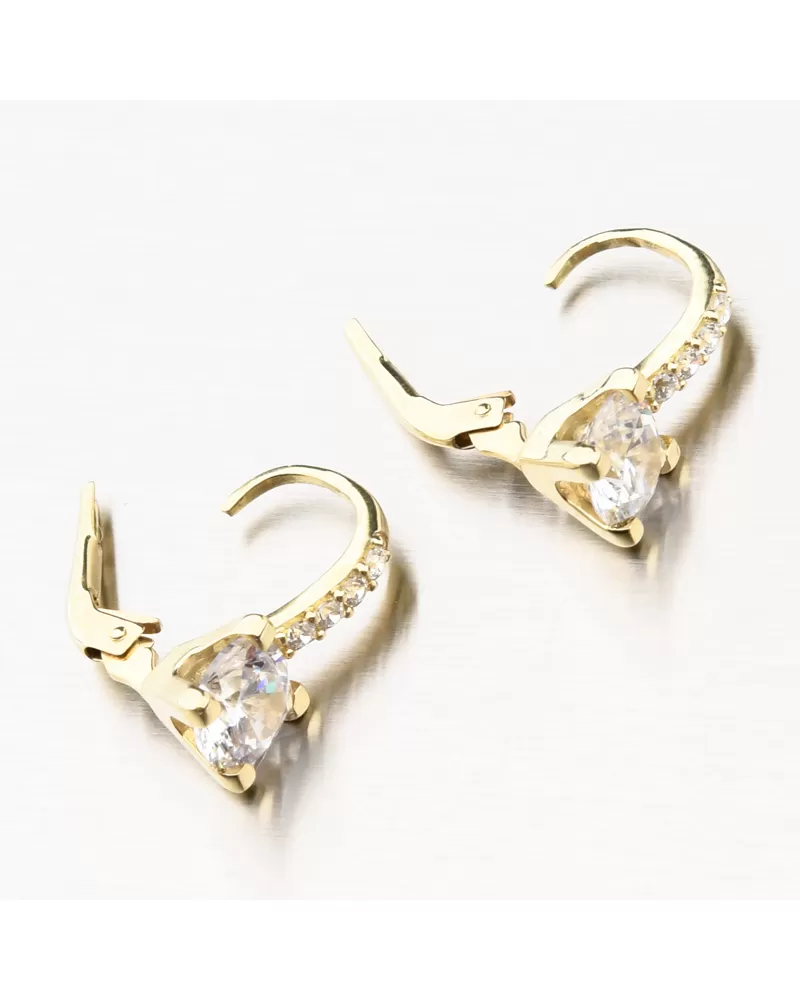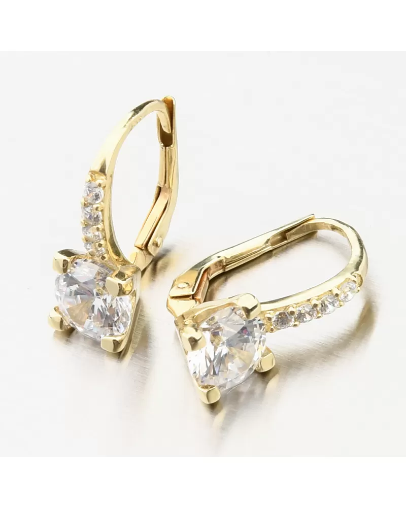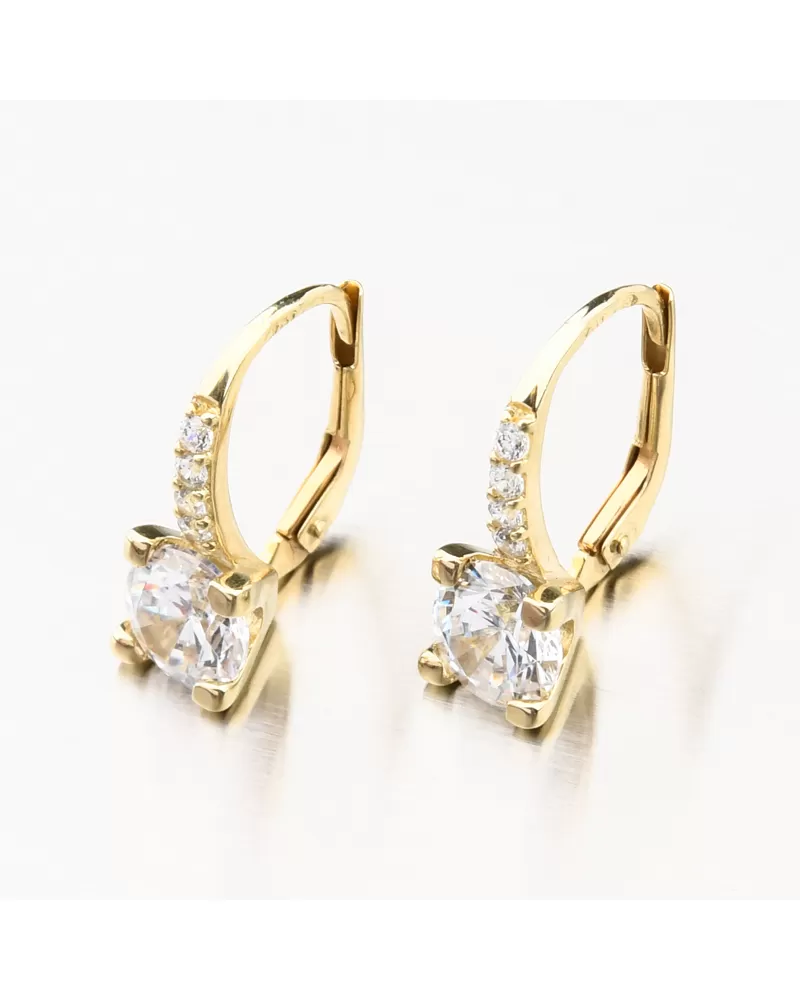 Žiarivé dámske náušnice klasického dizajnu patria medzi najobľúbenejší model medzi ženami. Pevnú konštrukciu náušníc zdobí dominantný zirkón v briliantovom bruse, ktorý je starostlivo fasovaný do korunky a uchytený štyrmi krapnami. Ďalej náušnice dopĺňajú menšie zirkóny, ktoré zdobia časť na hlavnom zirkónom. Tieto zirkóny sú tiež brúsené do briliantového brúsu. Briliantový brus zaisťuje maximálnu brilanciu vybrúsených facet, dokonale odráža svetlo a neuveriteľne žiari z každého uhla pohľadu. Šperk má pevnejšiu konštrukciu, ktorá plne vyváža vyššiu cenu a prsteň vám vydrží dlhšie ako podobné lacnejšie modely.