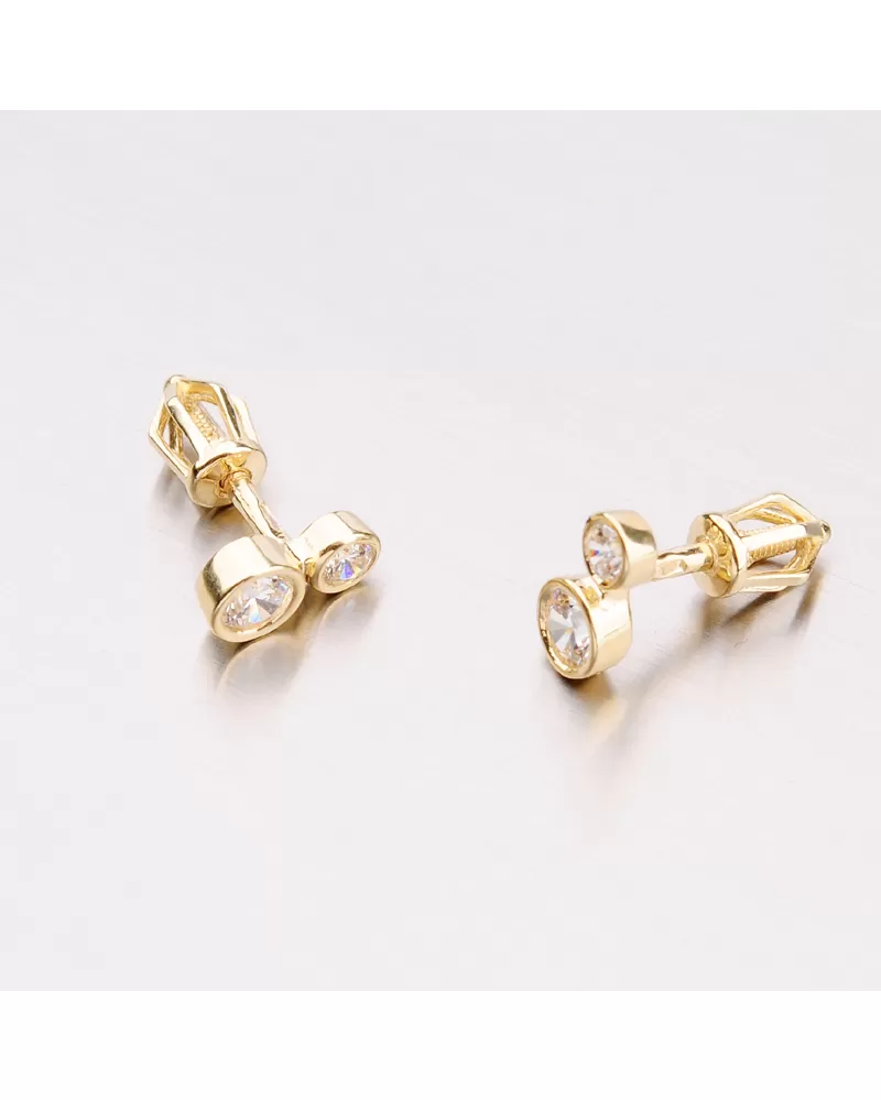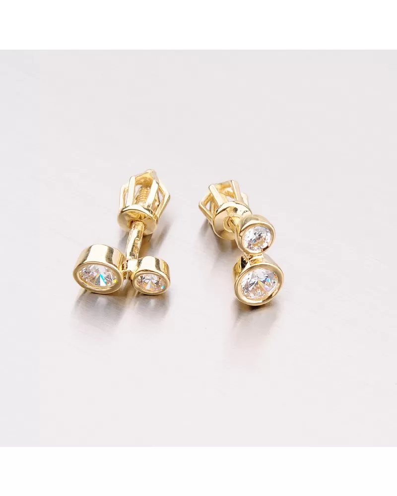 Milujete decentní šperky a vybíráte náušnice? Co třeba maximálně pohodlné náušnice pecky. Náušnice jsou zdobeny dvěma zirkony, které jsou pečlivě vsazeny do zlata. Zirkony jsou v briliantovém brusu. Tento brus propůjčuje zirkonům brilanci pravých diamantů. Zirkony jsou vsazeny nad sebou. Spodní je vetší a vrchní o něco menší.