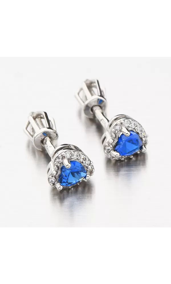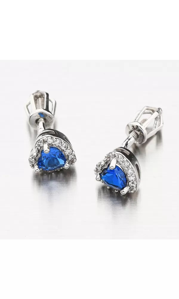 Zlaté náušnice pecky jsou zdobeny srdíčkem, kterému dominuje syntetický safír. Kolem safíru ve tvaru srdce jsou vsazeny menší zirkony v briliantovém brusu. Náušnice mají šroubovací zapínání, které je spolehlivé a pohodlné. Tyto náušnice se skvěle hodí pro ženy sportovkyně nebo pro ženy, který hledají náušnice, které se mohou nosit každý den i noc.