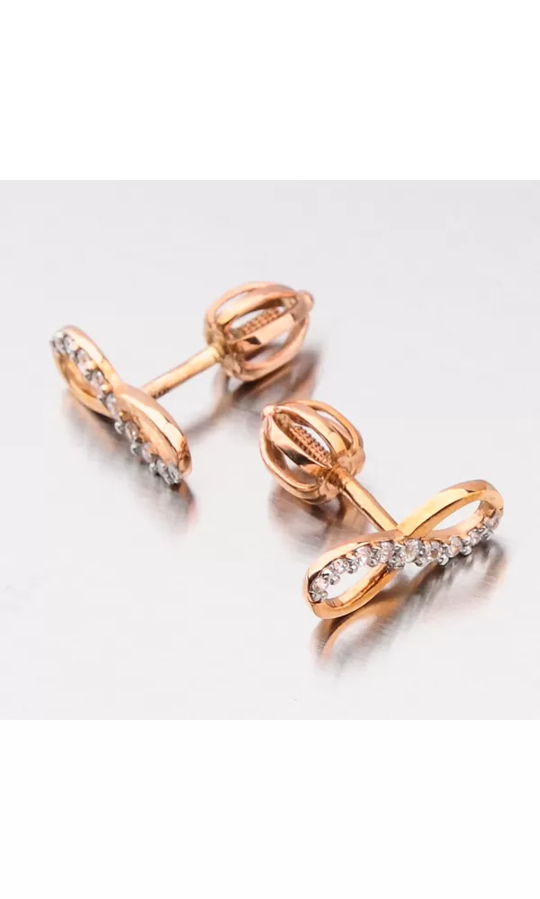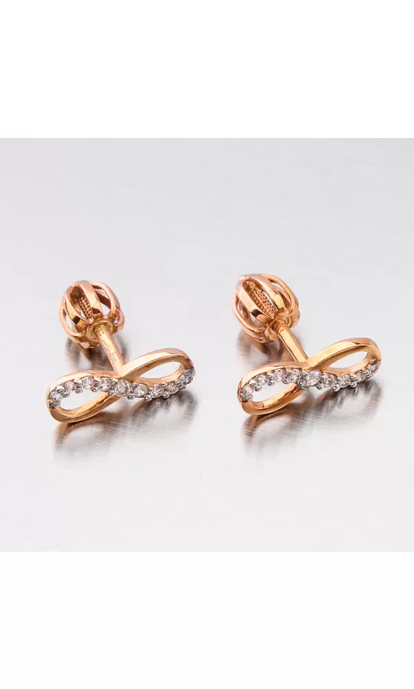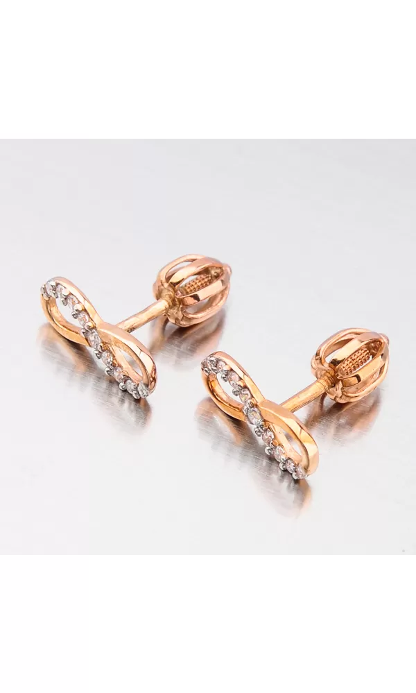 Zlaté náušnice pecky si zamilují ženy díky jejich praktičnosti a pohodlí. Naše výrobky ale mají něco navíc a to je design a kvalitní zpracování. Tento model náušnic je tvořen ozdobou ve tvaru nekonečna, které je zdobeno zirkony v briliantovém brusu. Tento brus náušnicím zajišťuje brilanci pravých diamantů. Náušnice se zapínají na šroubek.