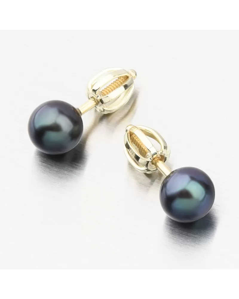 Perlové náušnice jsou opravdovou klasikou a sluší každé ženě. Půvabné zlaté náušnice nadchnou jemným provedením. Náušnice jsou typově pecky a ozdobou je drobná černá umělá perla. Perly jsou symbolem krásy a luxusu, ale také štěstí a úspěchu a spokojenosti. Dopřejte si tento šperk, který nesmí chybět ve Vaší šperkovnici.