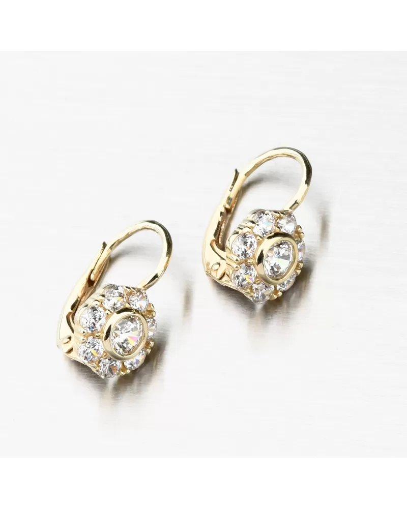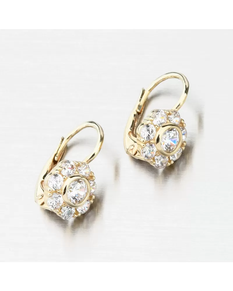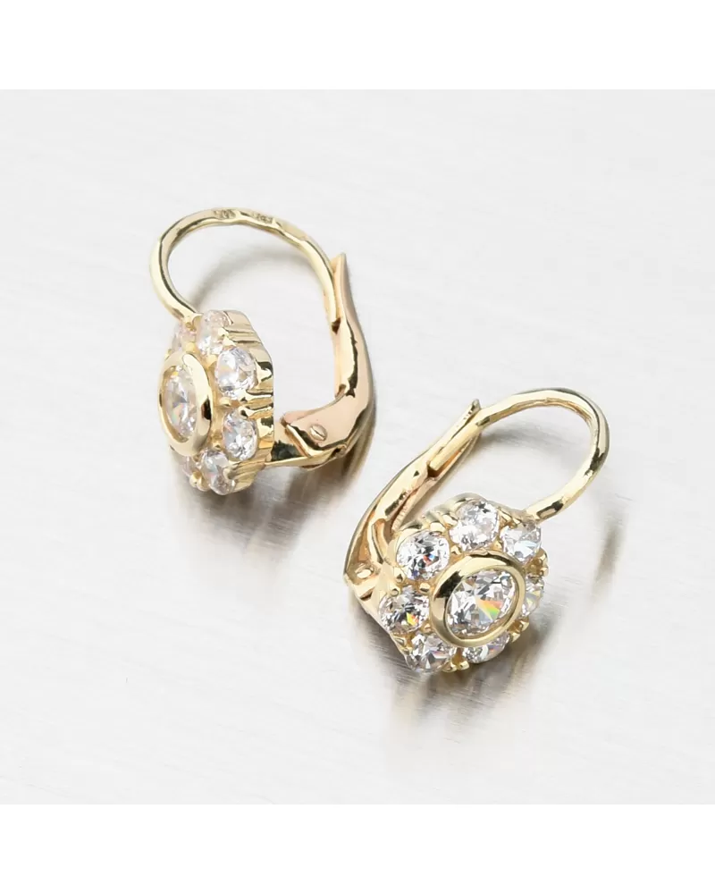 Dámske náušnice žlté zlato 585 kvetov so zirkónmi 663P-120388