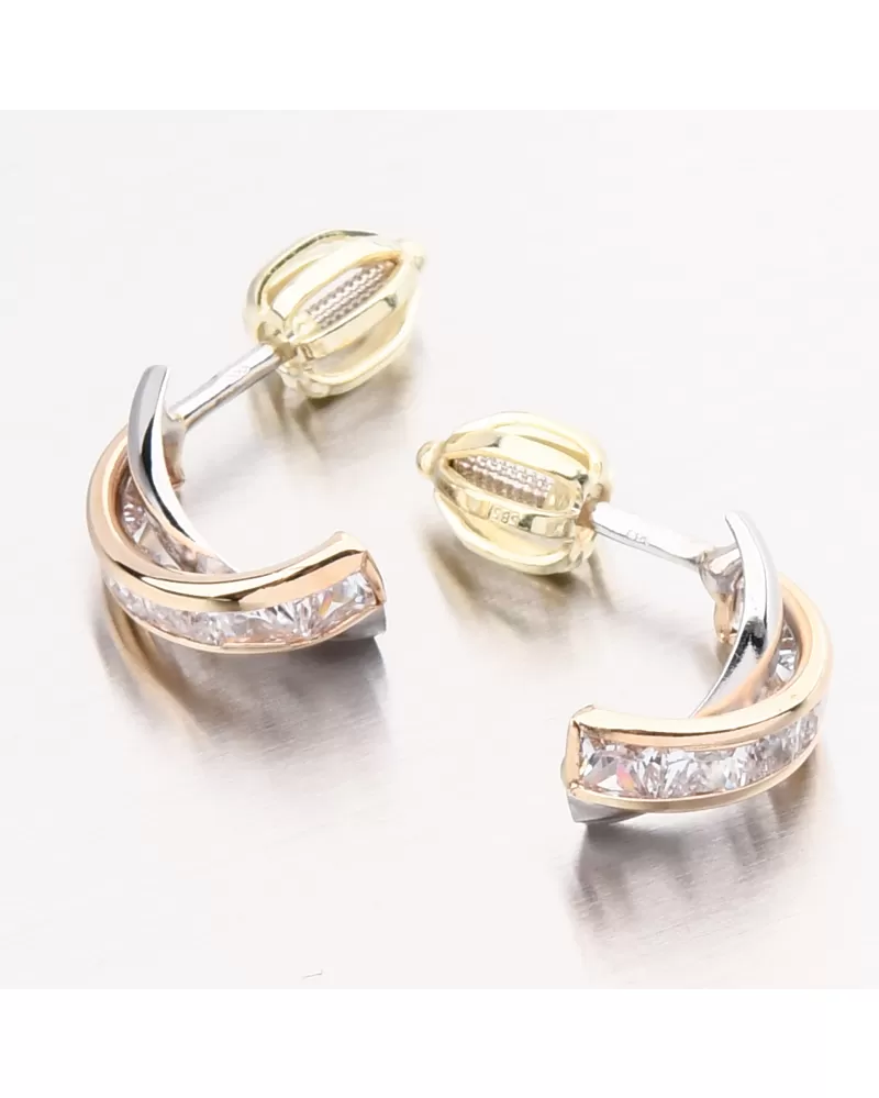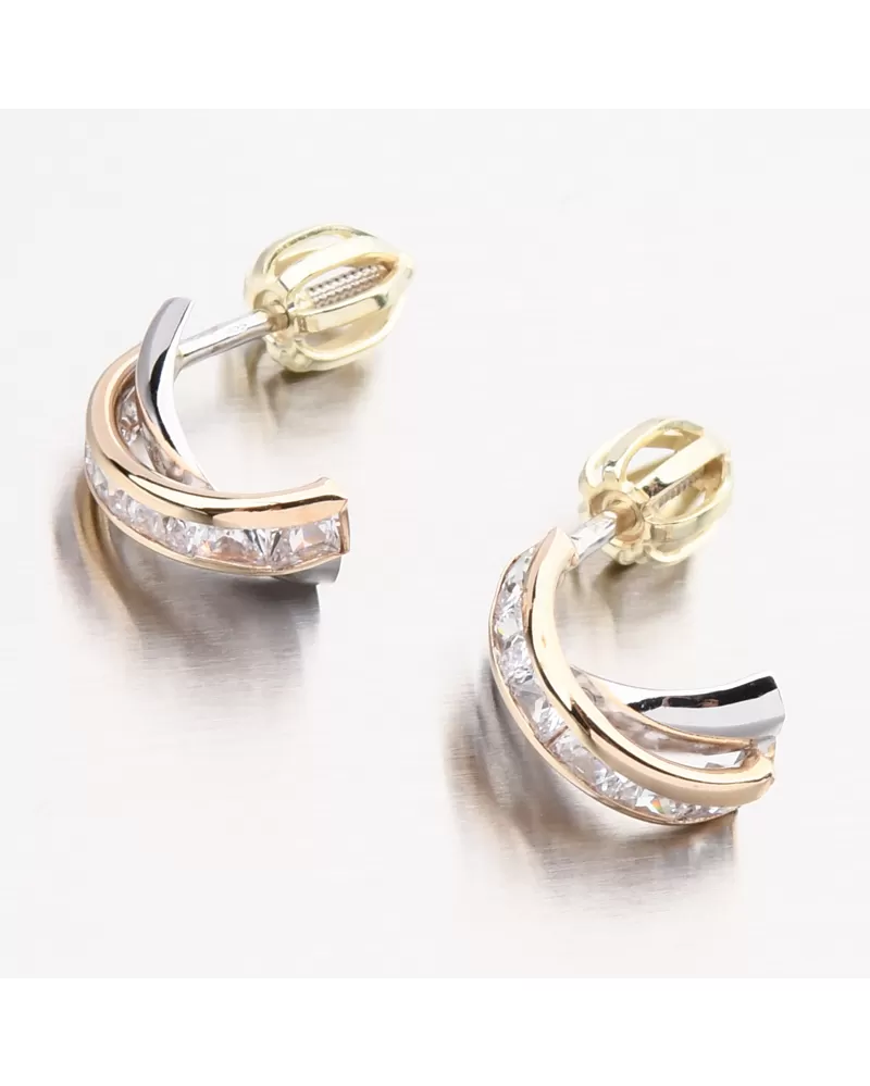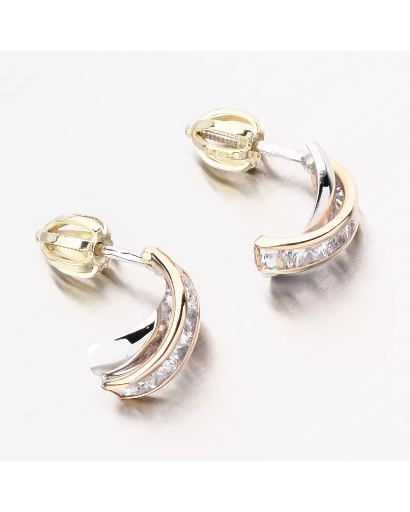 Máte radi hity, ale chcete významnú zmenu? Tieto náušnice vás inšpirujú s ich spracovaním. Výzdoba náušníc je kríženým tvarom, z ktorého jednej línie je v bielom zlate vo vysokom lesku a druhá čiara je v žltom zlate s brilantnými zirkónmi v tvare štvorca.