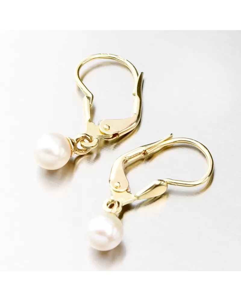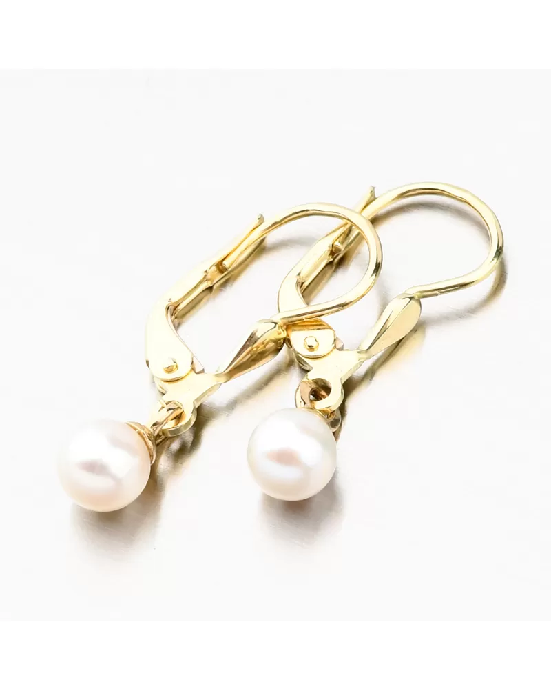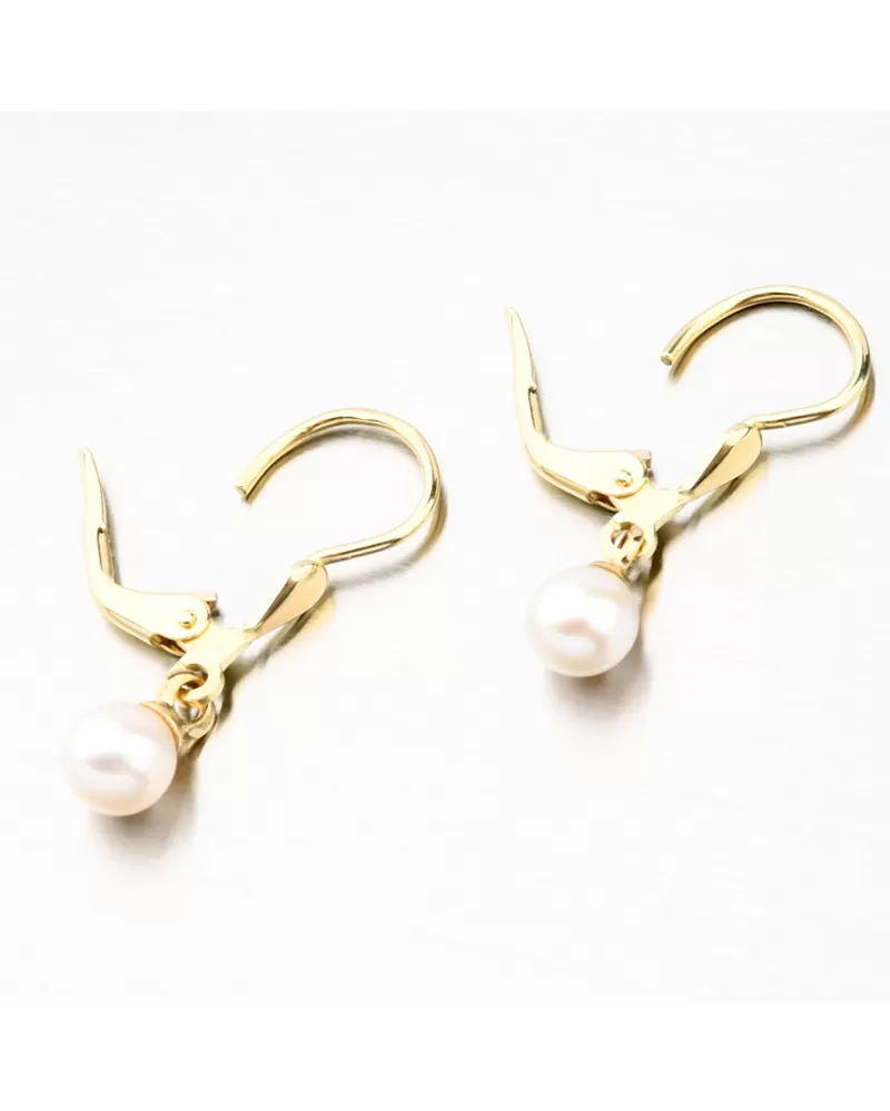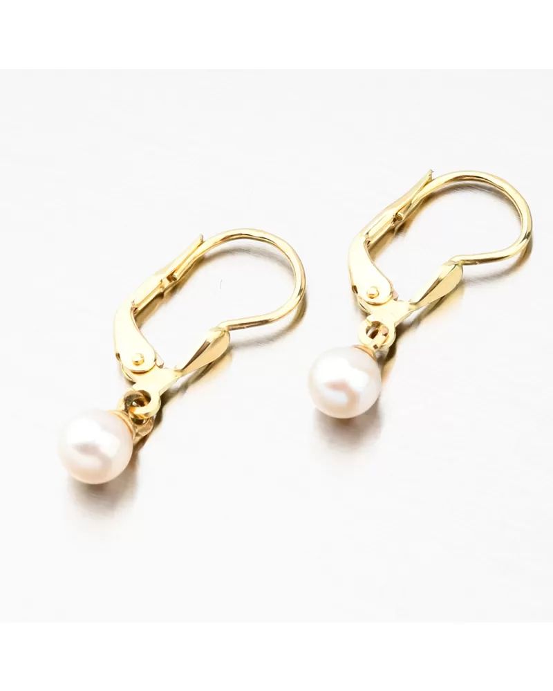 Jemné zlaté náušnice ozdobené prírodnou sladkovodnou perlou freshwater v bielej farbe. Náušnice majú perlu zavesenú na krúžku a pri pohybe sa pohybuje a žiaria na všetky strany. Biele perly symbolizujú čistotu, nevinnosť a nový začiatok. Sú symbolom luxusu a zmyselného tajomna, ktoré v sebe každá žena skrýva. Šperky s perlou vám nesmú chýbať vo vašej šperkovnici.