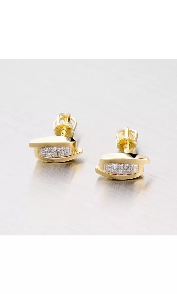 Jemné dámske náušnice sú vyrobené zo žltého štrnásťkarátového zlata 585/1000 v lesklej povrchovej úprave. Zdobené sú dvoma radmi drobných zirkónov. Náušnice sa zapínajú na skrutku.