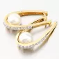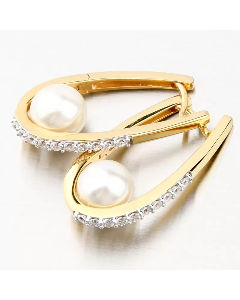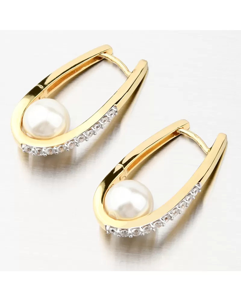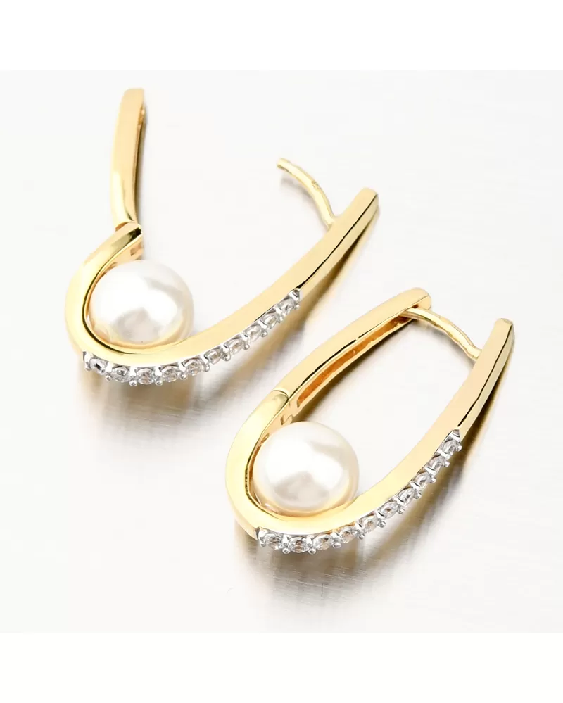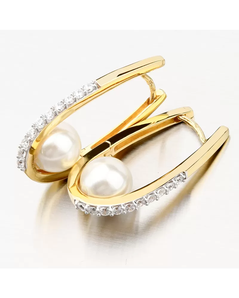 Luxusní zlaté náušnice, které jen tak nikde na nikom neuvidíte! Náušnice jsou oválného tvaru, kde od poloviny přední části do spodní části uvidíte nádherné třpytivé zirkony briliantového brusu. Tento brus zajišťuje maximální brilanci vybroušených facet, dokonale odráží světlo a neuvěřitelně září z každého úhlu pohledu. V dolním oblouku je usazena bílá uměla perla. Perly jsou symbolem krásy a luxusu, ale také štěstí a úspěchu a spokojenosti. Dopřejte si tento šperk, který nesmí chybět ve Vaší šperkovnici.