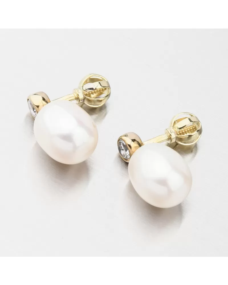 Dámske náušnice žlté zlato 585 perál so zirkónom a so zirkónom 453P-125068