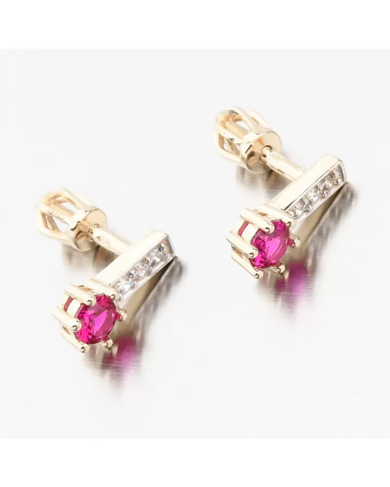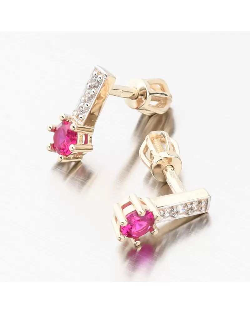 Dámske náušnice zo žltého zlata 585 zirkón s rubínom a 52GZ-8057-ZL-RUB