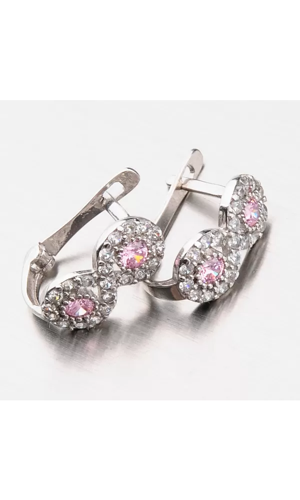 Dámske náušnice sú vyrobené z bieleho štrnásťkarátového zlata 585/1000 v lesklej povrchovej úprave. Náušnice zdobí ležatá osmička alebo nekonečno, ktoré je vysadené zirkónmi v briliantovom bruse. V osmičkách nájdete aj dva zirkóny v ružovej farbe.