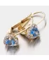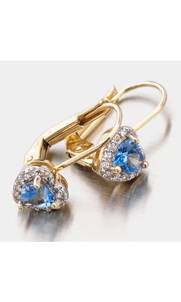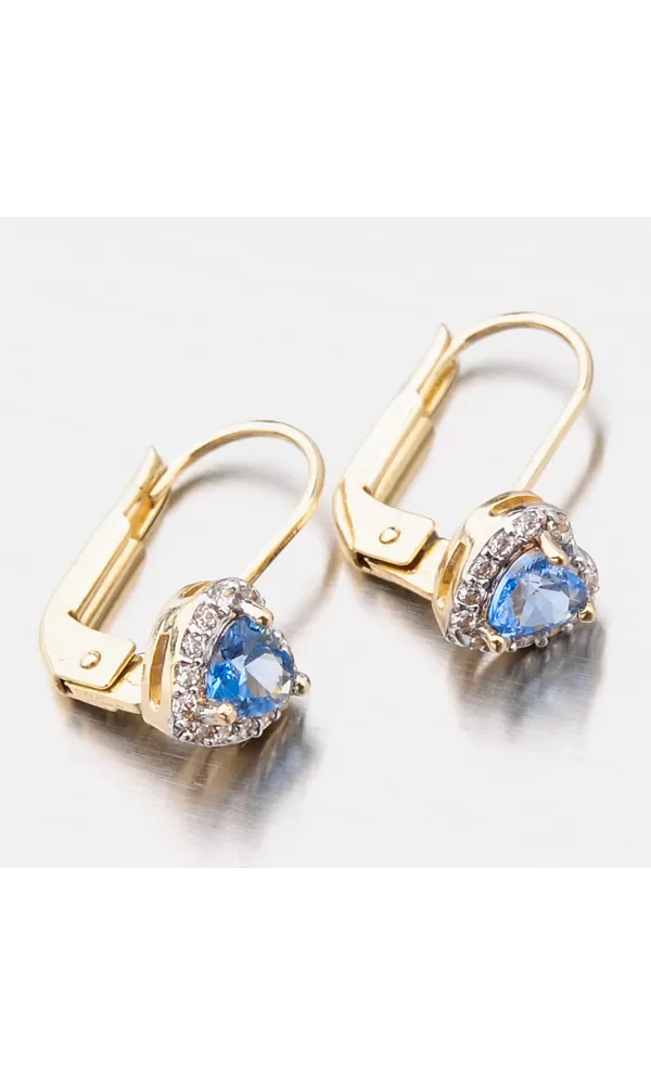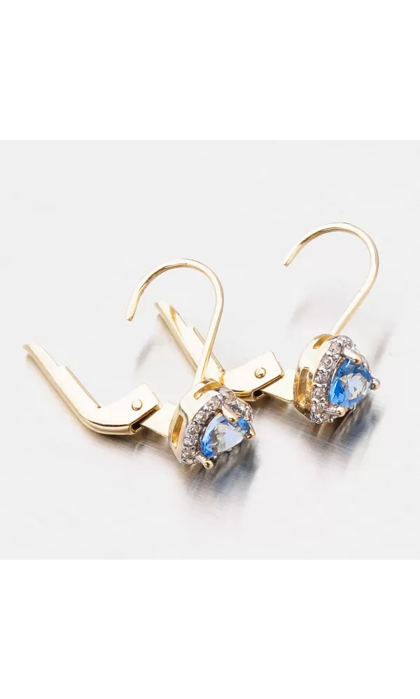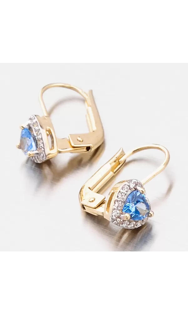Tento model náušnic je navržen tak, aby co nejméně překážel. Zaoblené hrany a pevné zapínání na klapku slibují pohodlnost a bezpečí. Náušnice jsou tvořeny ozdobou ve tvaru srdce, která je zdobena zirkony v briliantovém brusu. Tento brus zajišťuje zirkonům dokonalý odraz světla a zirkony se nádherně třpytí. Uprostřed srdce je vsazen syntetický akvamarín, který vás okouzlí modrou barvou.