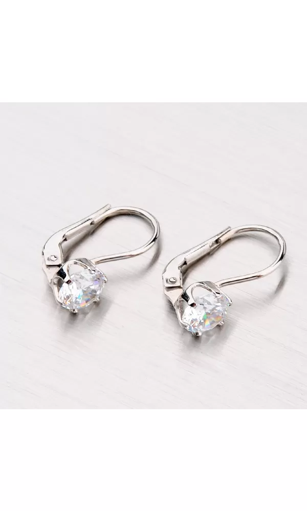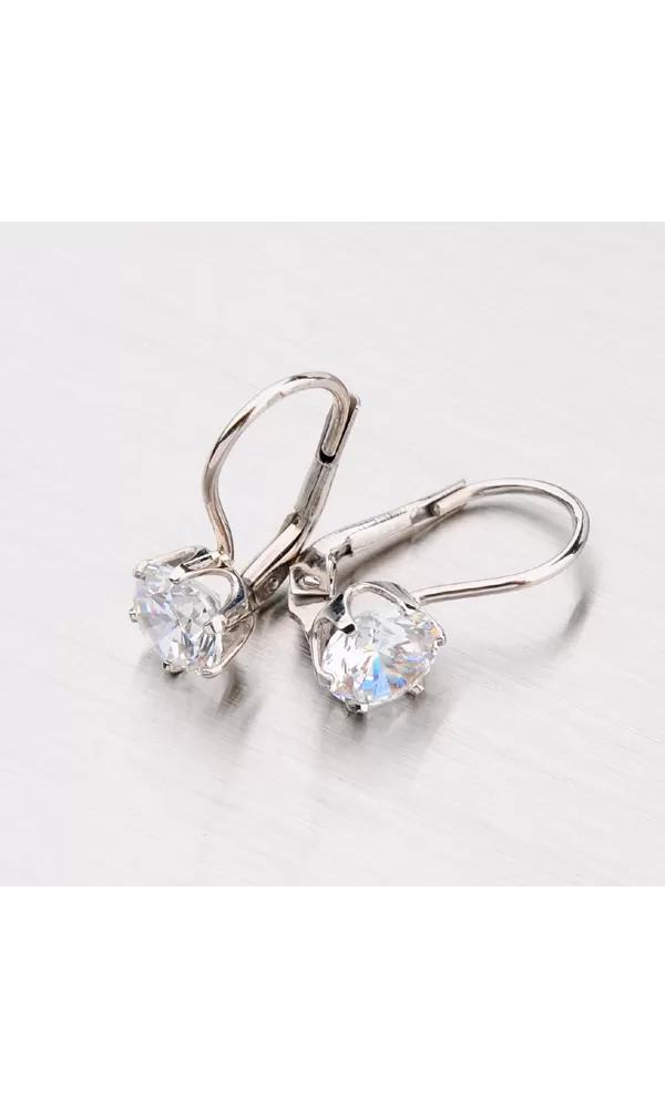 Luxusné dámske náušnice so zirkónom sú vyrobené z bieleho štrnásťkarátového zlata 585/1000 v lesklej povrchovej úprave. Náušnice majú klasické zapínanie na klapku.
