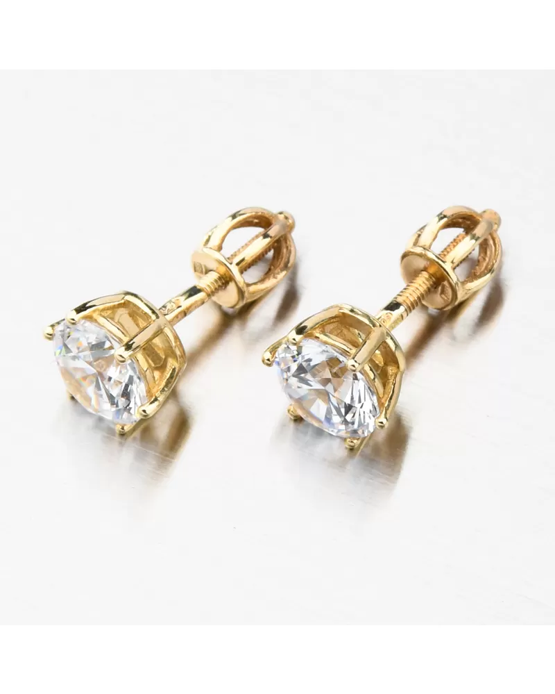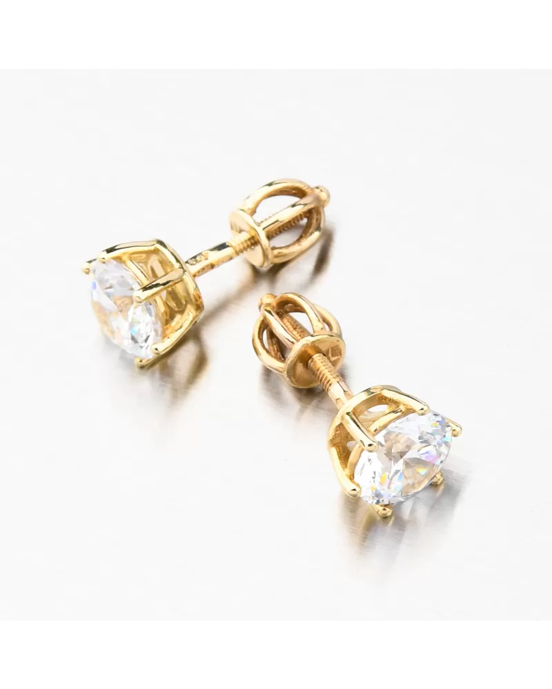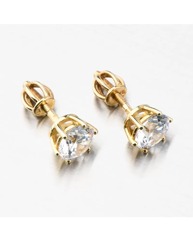 Jednoduché, ale přesto zářivé a výrazné zlaté náušnice. Náušnice zdobí třpytivý zirkon o velikosti 6 mm, který je usazen pomocí šesti krapen. Zirkon je briliantového brusu, který zajišťuje maximální brilanci vybroušených facet, dokonale odráží světlo a neuvěřitelně září z každého úhlu pohledu. Volba zapínání je velmi důležitá a zde rozhodně sázíte na jistotu. Náušnice mají zapínání na šroubek. Tyčinka náušnice se protáhne dírkou v uchu a upevní našroubováním balonku. Díky závitu se jedná o velmi bezpečný typ zapínání.