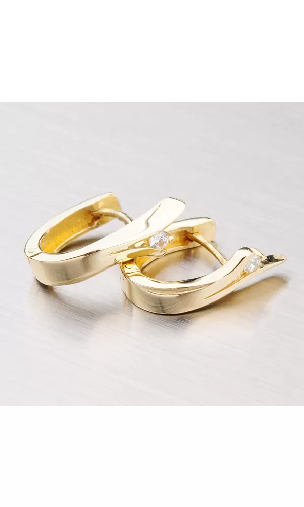 Elegantné dámske náušnice s bielym zirkónom vyrobené zo žltého štrnásťkarátového zlata 585/1000 v kombinácii lesklej a matnej povrchovej úpravy.… Celý popis