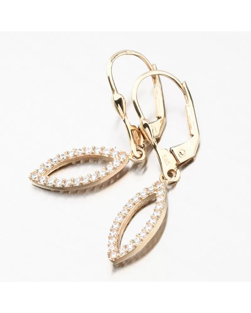 Zlaté visiace náušnice so zirkónmi 12-705