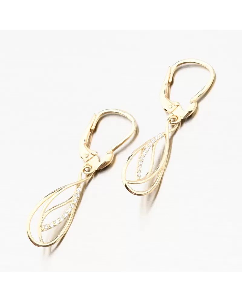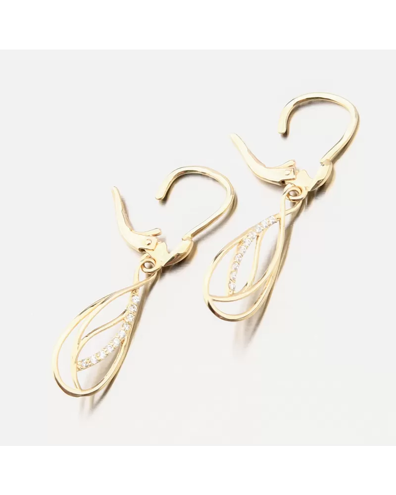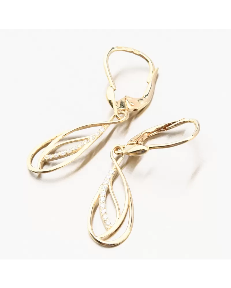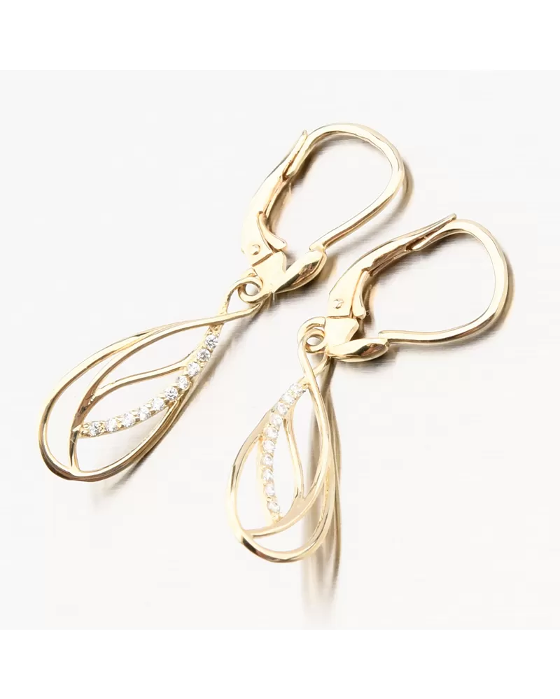 Elegantné visiace náušnice s nádhernou ozdobou zdobenou žiarivými zirkónmi. Ozdoba náušníc sa jemne pohybuje na zapínanie. Časť ozdoby je osadené zirkónmi. Zirkóny sú briliantového brusu, ktorý zaisťuje maximálnu brilanciu vybrúsených facet, dokonale odráža svetlo a neuveriteľne žiari z každého uhla pohľadu. Týmto typom náušníc zaručene zaujmete a nikto vás neprehliadne.