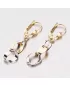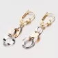 Dvojfarebné visiace náušnice vyrobené zo zlata s rýdzosťou 585/1000 sú zložené z na seba nadväzujúcich krúžkov s lesklým povrchom. Krúžky sa… Celý popis