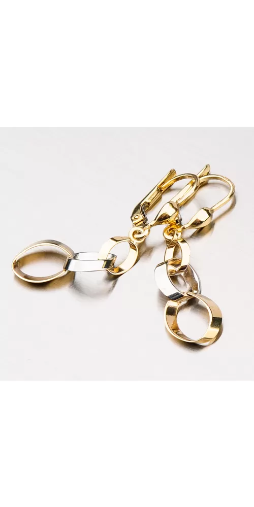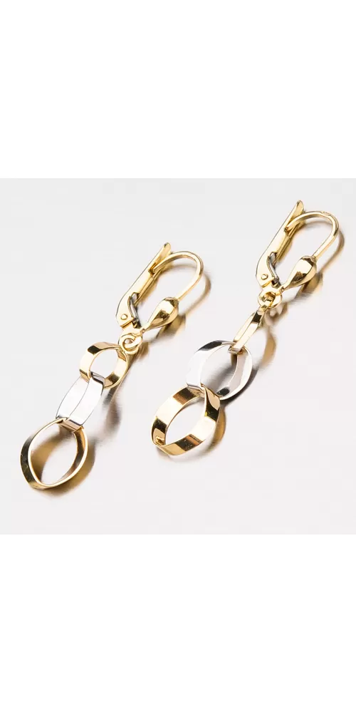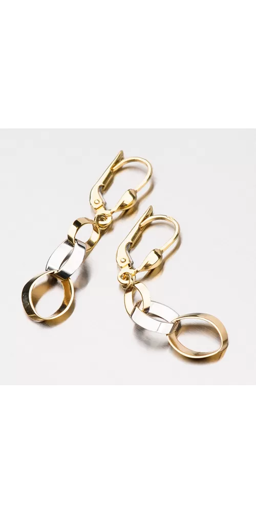 Normálne 0 21 false false false A ST1:*{správanie: url (#ieooui)} nezameniteľné náušnice podložky sa vyrábajú v kombinácii bieleho a žltého štrnástich cave zlata 585/1000 v lesklom povrchu. Náušnice sú zdobené príveskom, ktorý pozostáva z troch krúžkov usadených stúpajúcich podľa veľkosti. Výhodou týchto náušníc nie je iba vzhľad náušníc, ale aj ich váha. Náušnice sú ľahké a príjemne nosia. Náušnice podložky sú pripevnené k chlopni, ktorá je veľmi pohodlná a bezpečná.