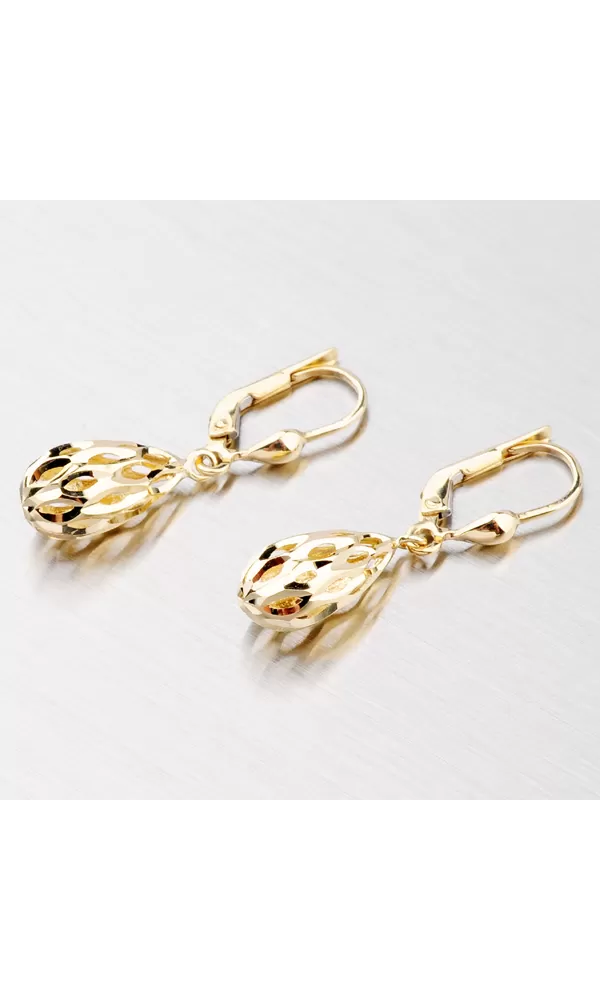 Dámske čalúnené náušnice sú vyrobené zo žltých štrnástich -karátových zlatých 585/1000 v lesklom povrchu. Náušnice majú upevnenie na klapky.
