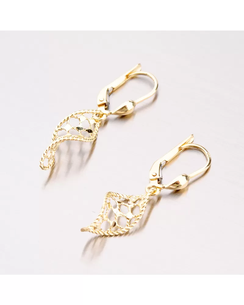 Zaujímavý model visiacich náušníc vás zaujme príveskom, ktorý je tvorený špirálkou. Špirálka je zdobená sieťou so zvýraznenými plôškami gravírovaním. Gravírovanie je prevedené diamantovým rycím hrotom, ktorý zaisťuje najvyšší možný lesk gravírovaných facet. Náušnice sa dokonale hodia ako doplnkom na každý deň. Ich design je nenásilný ale veľmi efektný. Skvele poslúži ženám s dlhými aj krátkymi vlasmi. Náušnice sa zapínajú na klapku.