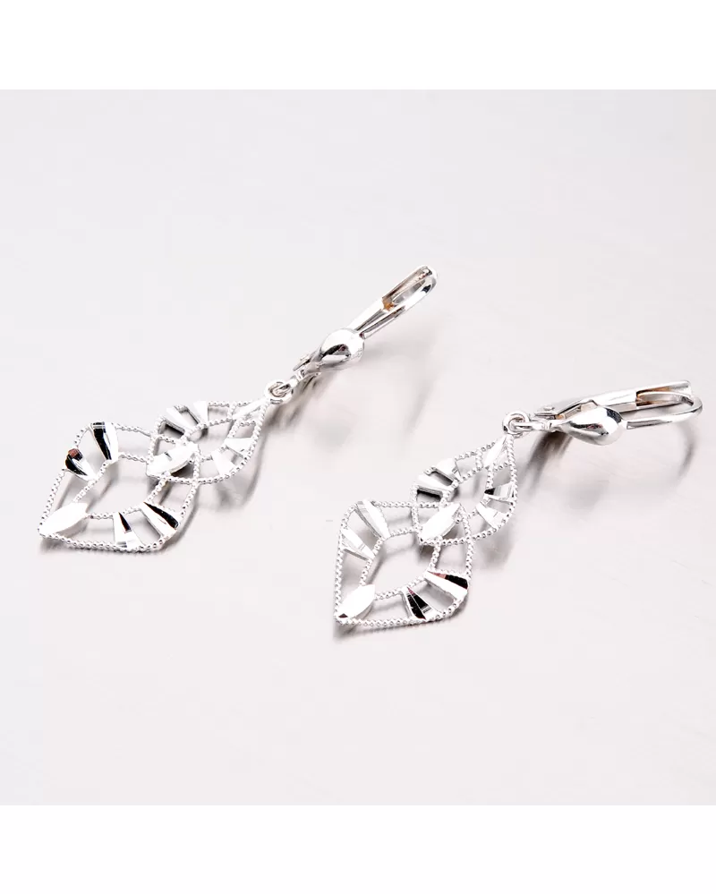 Zlaté náušnice v jedinečnom dizajne, ktorý sa len tak neopozerá. Prívesok je tvorený z dvoch štvorcov, ktoré sú do seba zapletené. Miestami sú náušnice zdobené gravírovaním. Gravírovanie je prevedené diamantovým rycím hrotom, ktorý zaisťuje najvyšší možný lesk gravírovaných facet.
