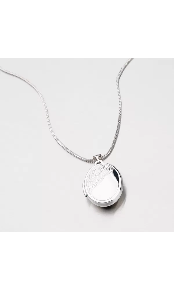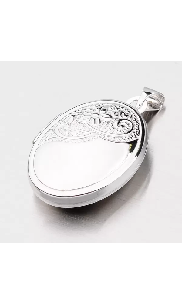 Ak hľadáte originálny darček pre svojich najbližších, tak tento medailón v oválnom tvare je práve to, čo hľadáte. Prívesok je vyrobený z bieleho štrnástich karátového zlata o rýdzosti 585/1000 v lesklej povrchovej úprave. Medailón je otvárací s priehľadnou fóliou, pripravený na vloženie dvoch fotografií. Prívesok je navyše zdobený krásnym gravírovaním.