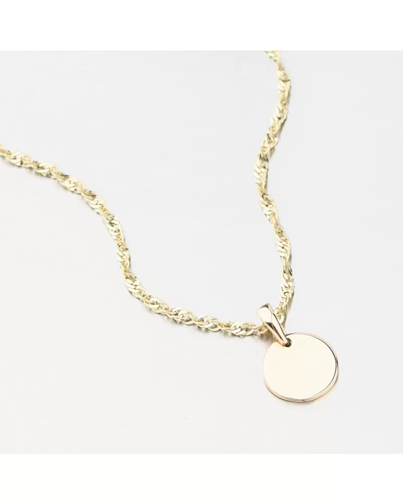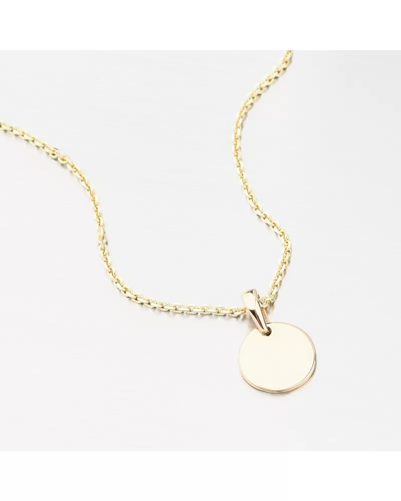 Jednoduchý zlatý prívesok okrúhleho tvaru vo vysokom lesku. Predná strana prívesku môže byť gravírovaná. napr. meno, dátum, venovanie. Gravírovaný prívesok je ideálnym darčekom pre vašich blízkych. Zadajte podrobnosti do stĺpca "gravírovanie".