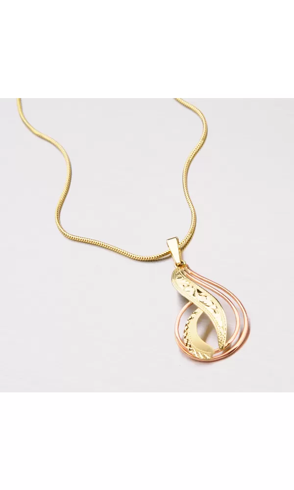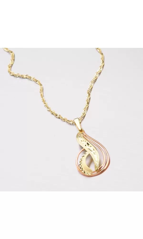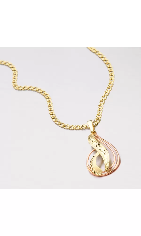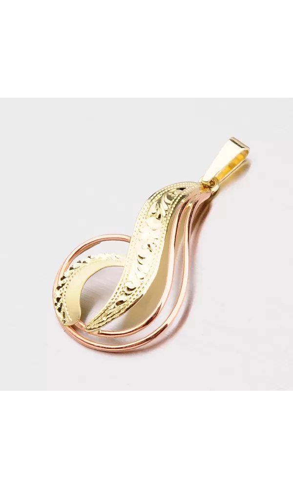 Väčší prívesok je vyrobený tradičnou klenotníckou technikou v kombinácii žltého a červeného štrnáctikarátového zlata 585/1000. Prívesok je vyrobený v lesklej povrchovej úprave a je bohato zdobený ručným rytím.
