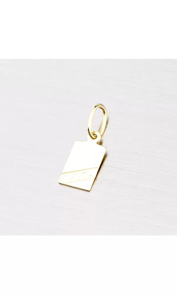 Moderný prívesok v tvare taniera je vyrobený zo žltých štrnástich -karátových zlatých 585/1000 v lesklom povrchu. Na prednej alebo zadnej časti prívesku môžete vyzdvihnúť vybraný text, napríklad meno alebo písmeno. Zadajte popis rytiny v špeciálnych požiadavkách poľa.