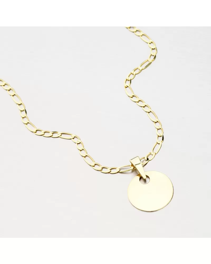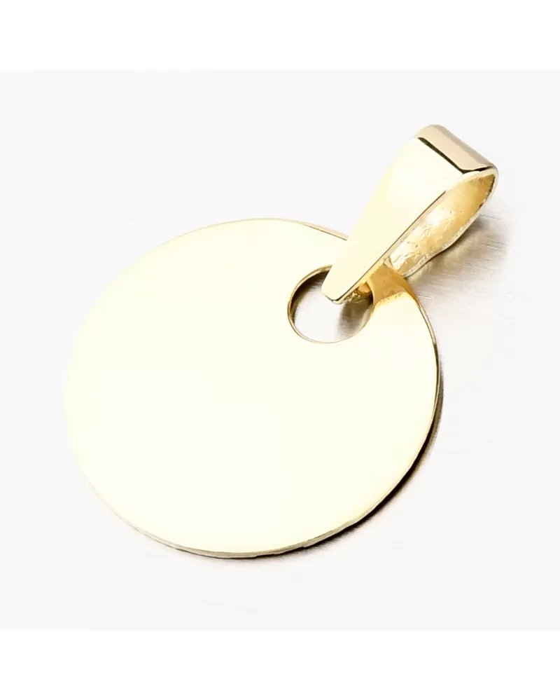 Jednoduchý zlatý prívesok okrúhleho tvaru vo vysokom lesku. Na prívesok je možné nechať z prednej alebo zadnej strany urobiť rytinu. Napr. meno, dátum, venovanie. Prívesok s rytinou sa hodí ako perfektný darček pre Vašich milovaných. Detaily prosím uveďte do kolónky "rytina".