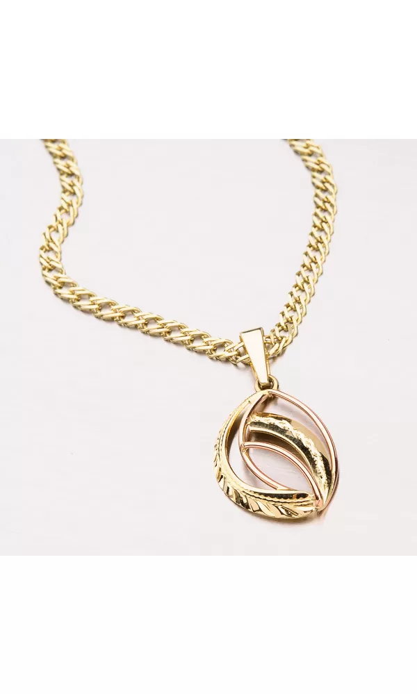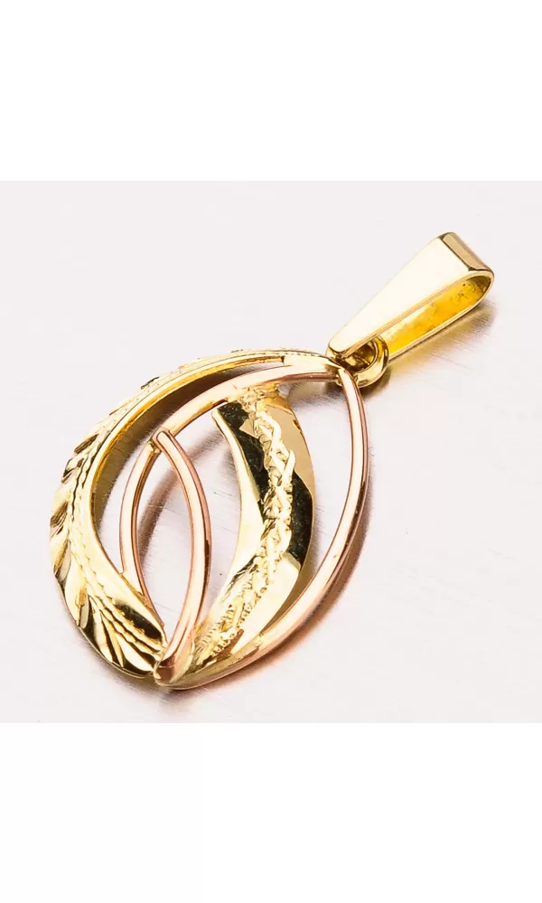 Zameriavame sa na detaily a originalitu šperkov. Tento prívesok zapôsobí na kombináciu žltého a ružového zlata a predovšetkým gravírovanie ruky.  Zlatý prívesok je vyrobený v kombinácii ružovej a žltej štrnástich -karátovej zlata 585/1000 v lesklom povrchu.