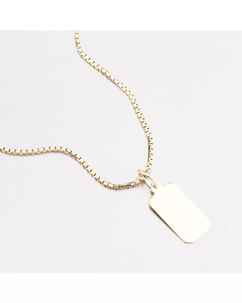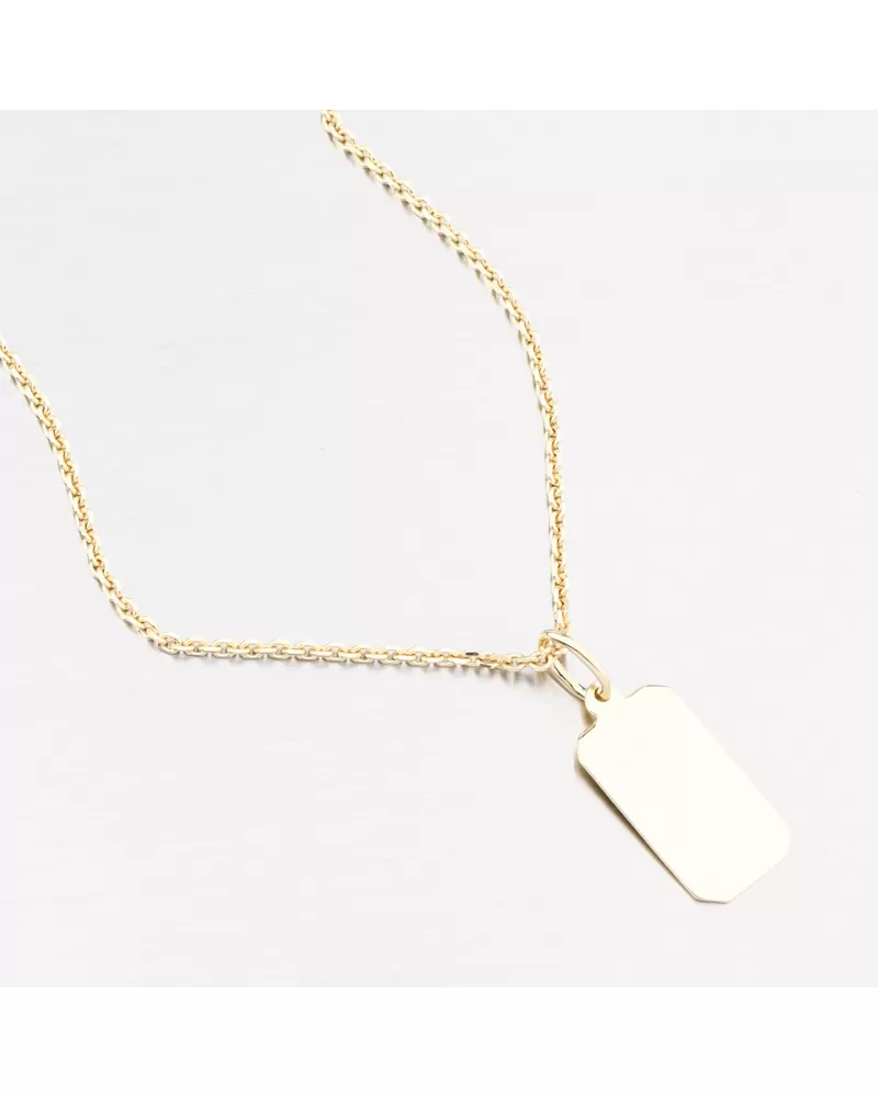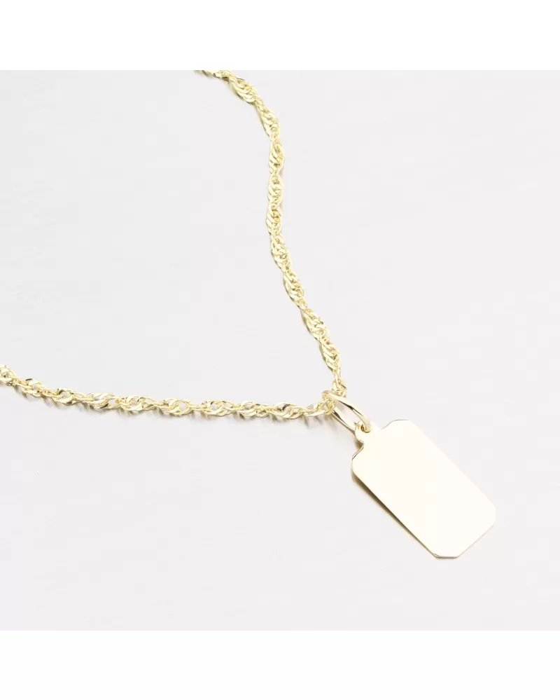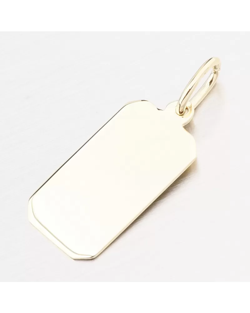 Jednoduchý zlatý prívesok v tvare dosky s vysokým leskom. Je možné mať rytie na oboch stranách na prívesku. Napr. Meno, dátum, odhodlanie. Prívesok na rytie sa hodí ako perfektný darček pre vášho milovaného. Zadajte podrobnosti do poľa „Gravírovanie“.