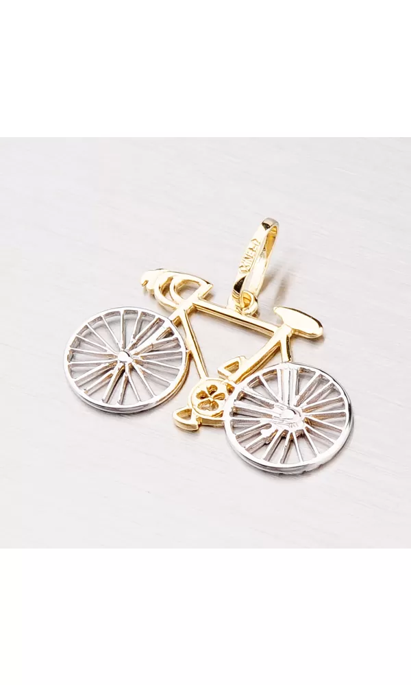 Pôvodný prívesok na tvare kolies je vyrobený zo štrnástich -karátových zlatých 585/1000 v kombinácii farby žltej a bieleho zlata. Prívesok je vyrobený v lesklom povrchu.