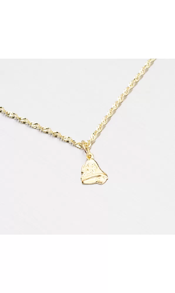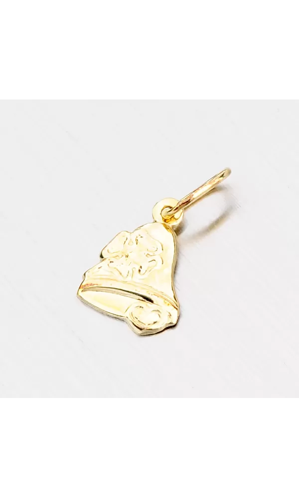 Roztomilý zlatý prívesok v tvare zvončeka, ktorý je zdobený malým štvorkolepým ďatelkou. Prívesok je vyrobený zo žltých štrnástich -karátových zlatých 585/1000 v lesklom povrchu. Tento prívesok určite urobí šťastnými vašich blízkych!