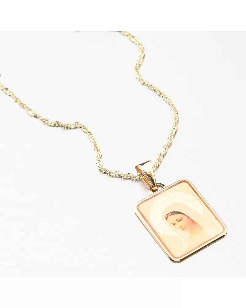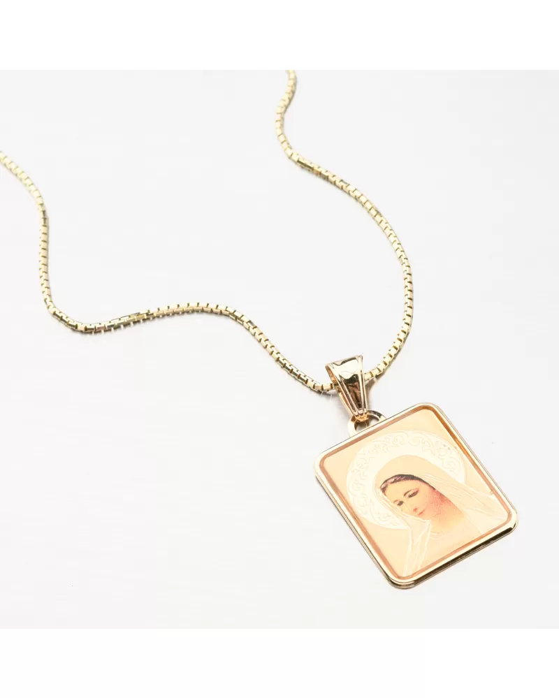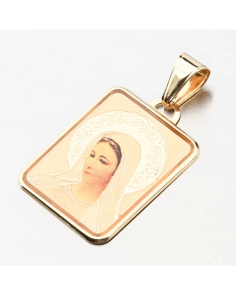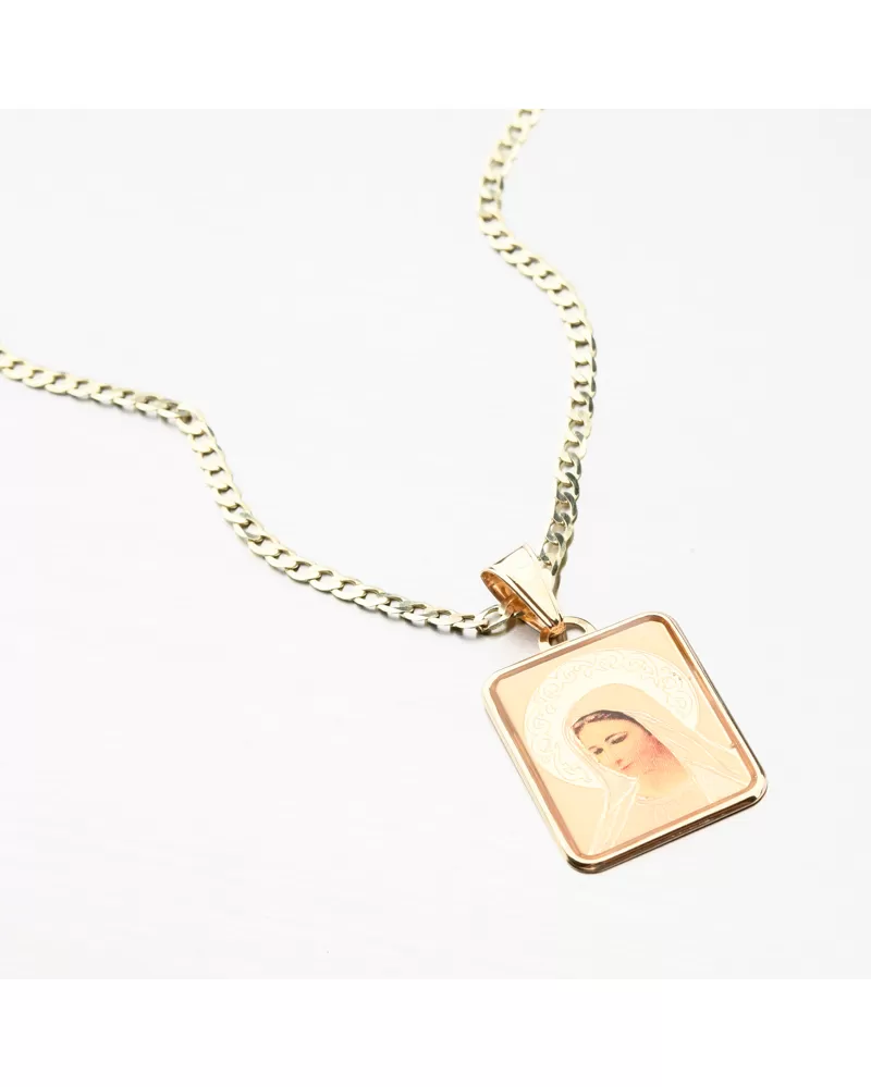 Prívesok s obľúbeným náboženským motívom na výraznej doštičke s vyobrazenou Madonou. Madonina žiara je zdobená nádherným gravírovaním, ktorý prívesok decentne zvýrazní.