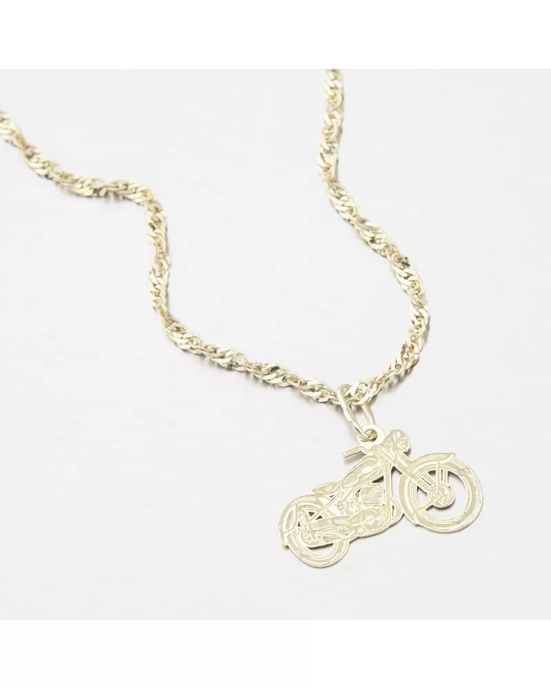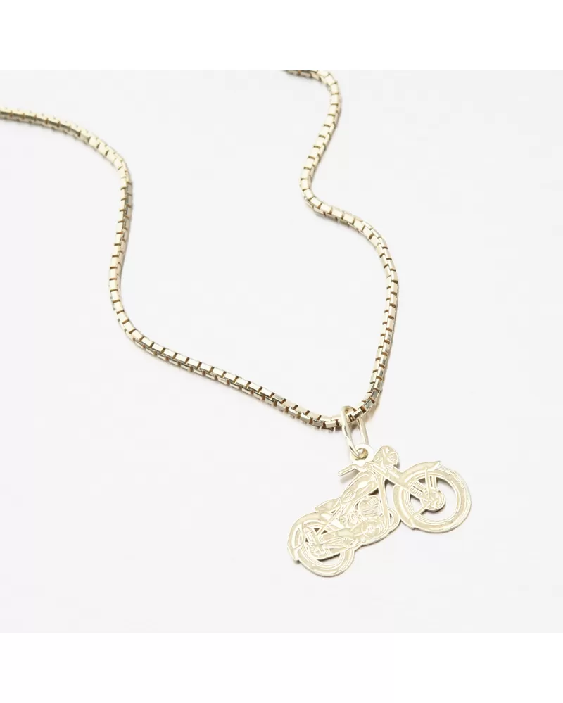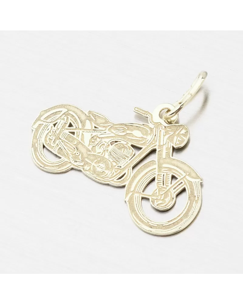 Drobný zlatý prívesok v tvare motorky, ktorá je symbolom voľnosti a ľahkosti, ktorú cítite na dvoch kolesách. Prívesok je z jednej strany do detailu prepracovaný pre dokonalé zvýraznenie motorky pomocou jemných rýh a kombináciu lesklej a matnej úpravy a druhá strana prívesku je vo vysokom lesku.