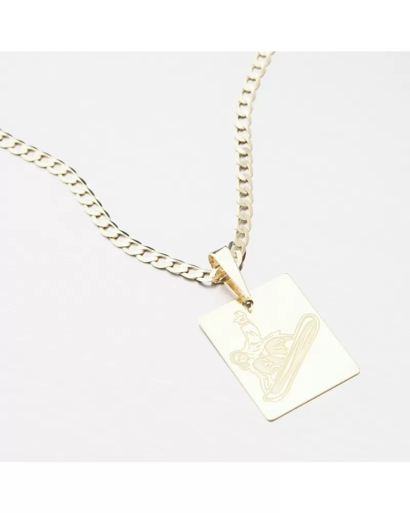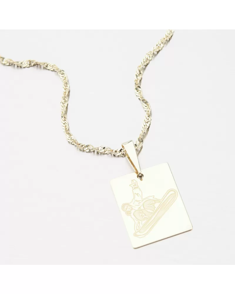 Dokonalý darček pre športovcov alebo športových fanúšikov v jazdení na snowboarde. Zlatý prívesok v tvare obdĺžnikovej doštičky, na ktorej je snowboardista. Ten je vykreslený pomocou jemných liniek a striedanie lesku a zamatového matu. Na druhú stranu prívesku, ktorá je v lesku, je možnosť nechať si vyryť vlastný text, ktorý je pre vás dôležitý. Požiadavku na rytinu prosím uveďte do kolónky "rytina". Zaobstarajte si tento úžasný prívesok.