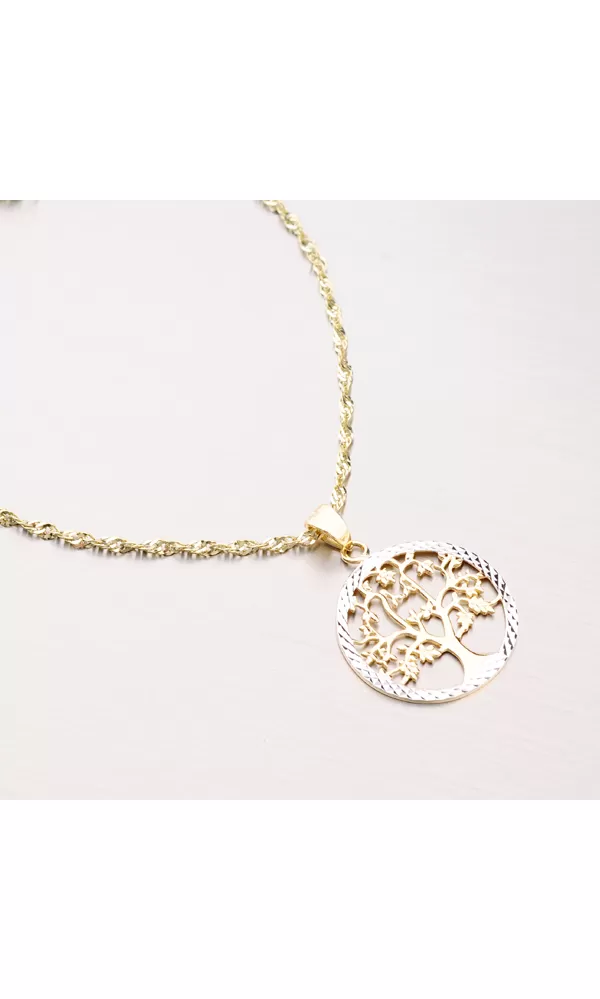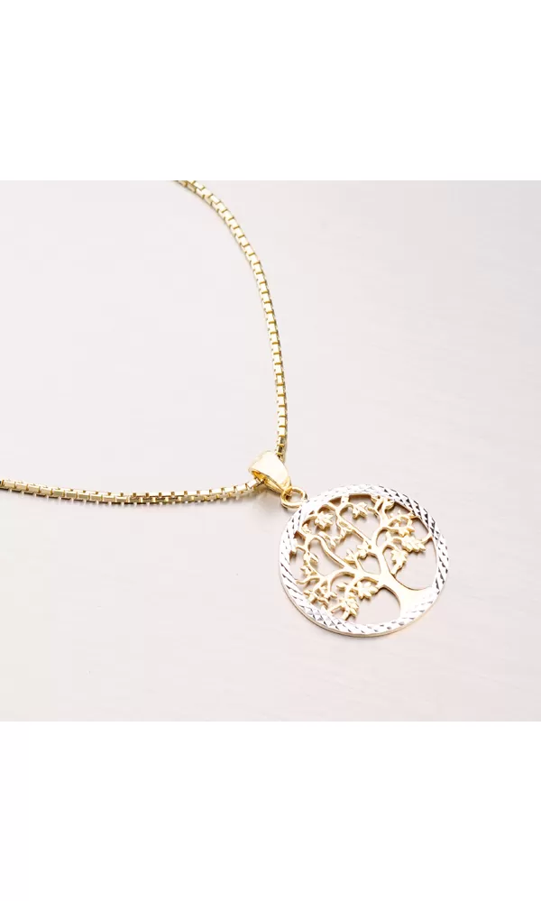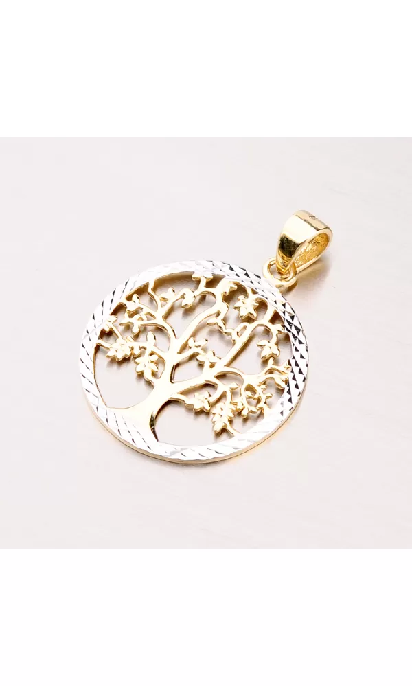Dokonalý prívesok v okrúhlom tvare vás prekvapí prepracovaným stromom života. Strom života zviera kruh v bielej farbe zlata zvýraznený gravírovaním. Gravírovanie je prevedené diamantovým rycím hrotom, ktorý zaisťuje najvyšší možný lesk gravírovaných facet. Zlatá prívesok je tak akurát veľký aby, vám skvele ozdobil dekolt. Zlatý prívesok je vyrobený zo žltého štrnásťkarátového zlata 585/1000 v lesklej povrchovej úprave.