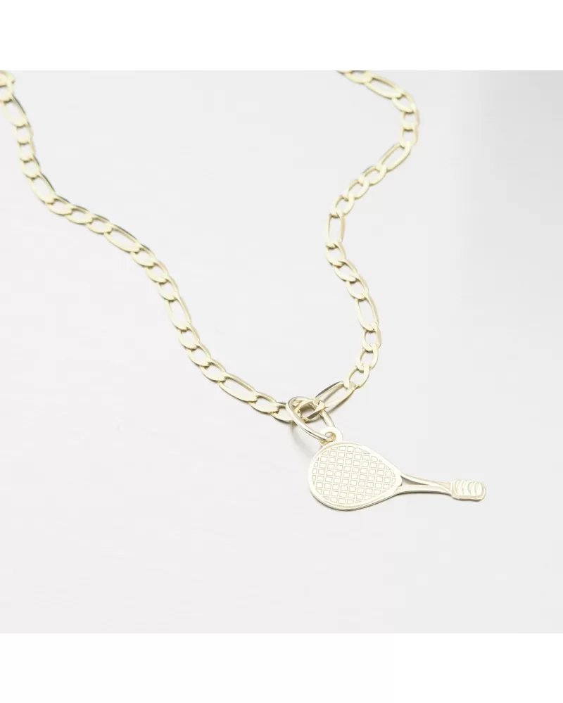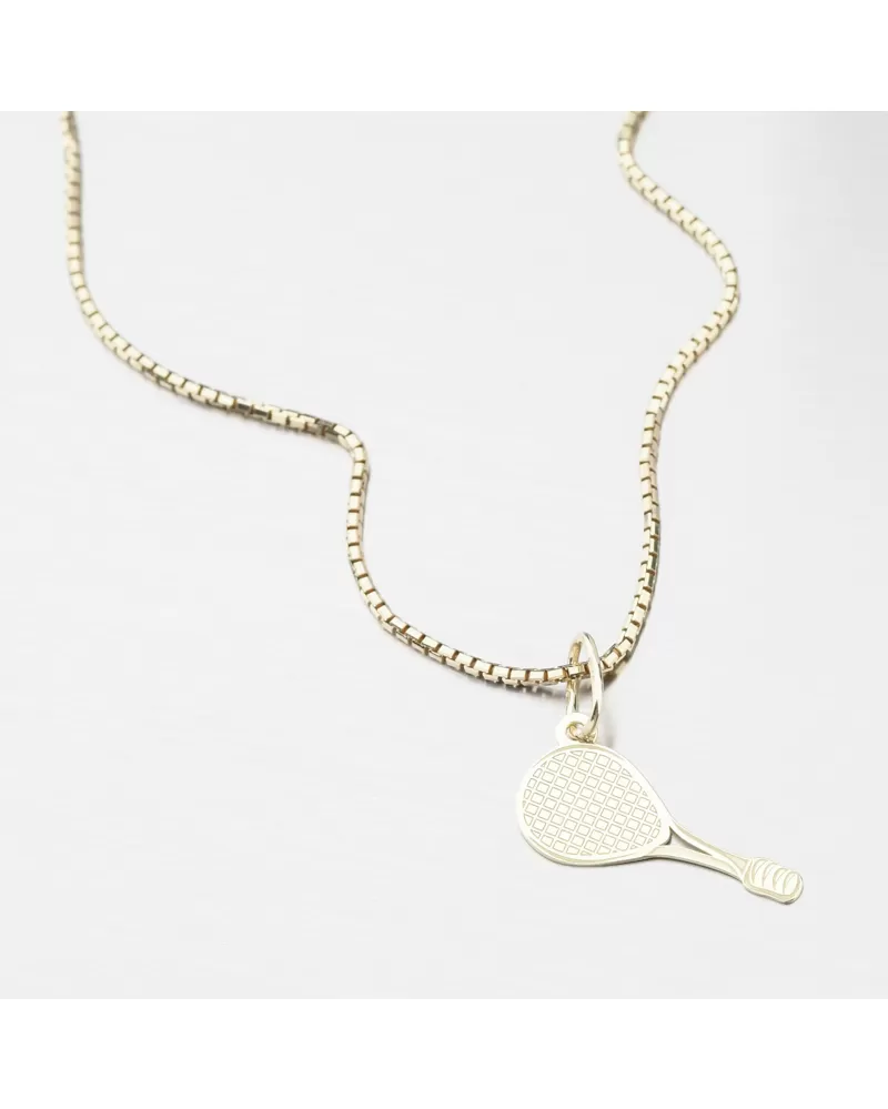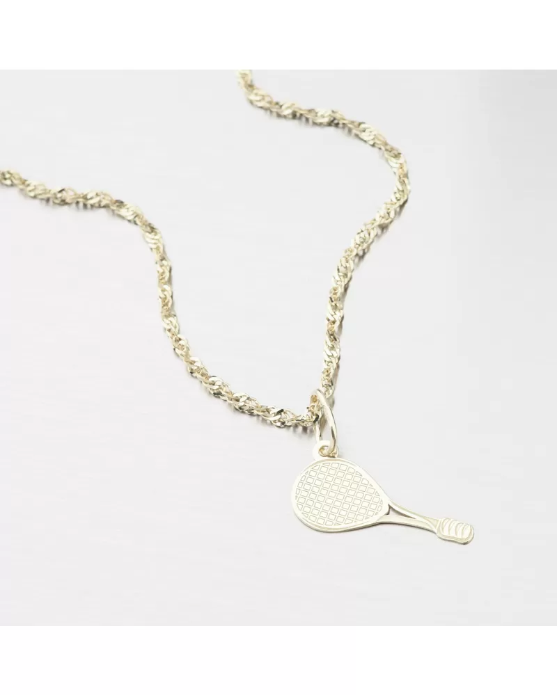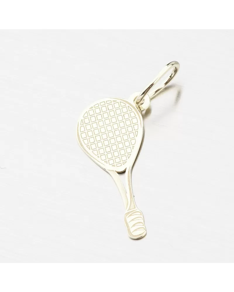 Originálny darček nielen pre hráčov tenisu, ale aj pre ich fanúšikov. Drobný zlatý prívesok v tvare tenisovej rakety. Tá je vykreslená pomocou jemných liniek a striedanie lesku a zamatového matu. Druhá strana je v lesku a bez liniek.