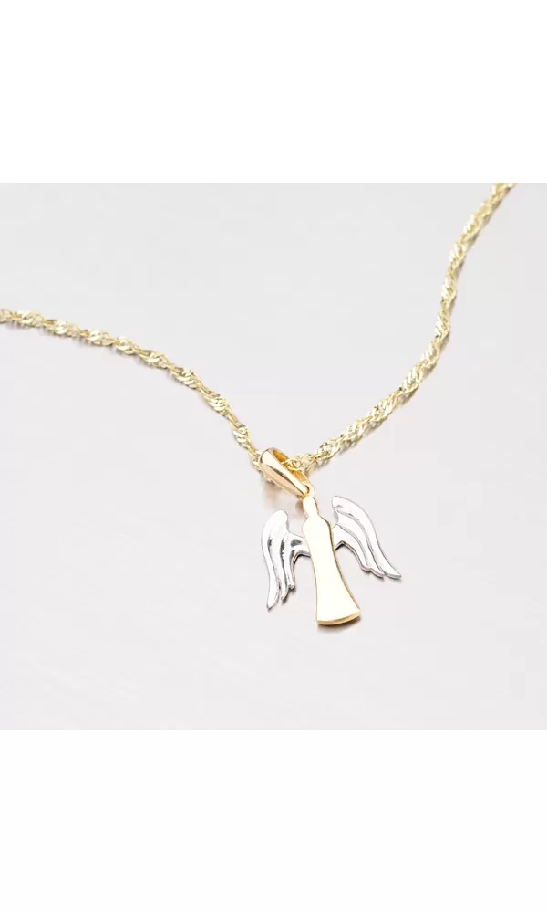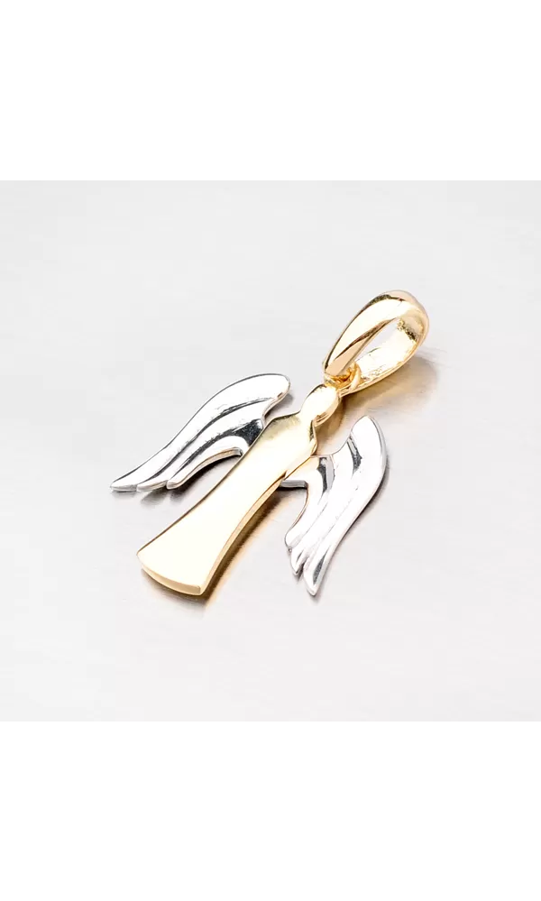 Máte rada anjelikov a hľadáte nejaký zaujímavý prívesok? Presne pre vás tu máme tohto anjelika, ktorý je vyrobený zo žltého štrnástich karátového zlata o rýdzosti 585/1000 v kombinácii bielej a žltej farby. Žlté telíčko zdobia biele krídla pripevnené anjelikovi na chrbát.