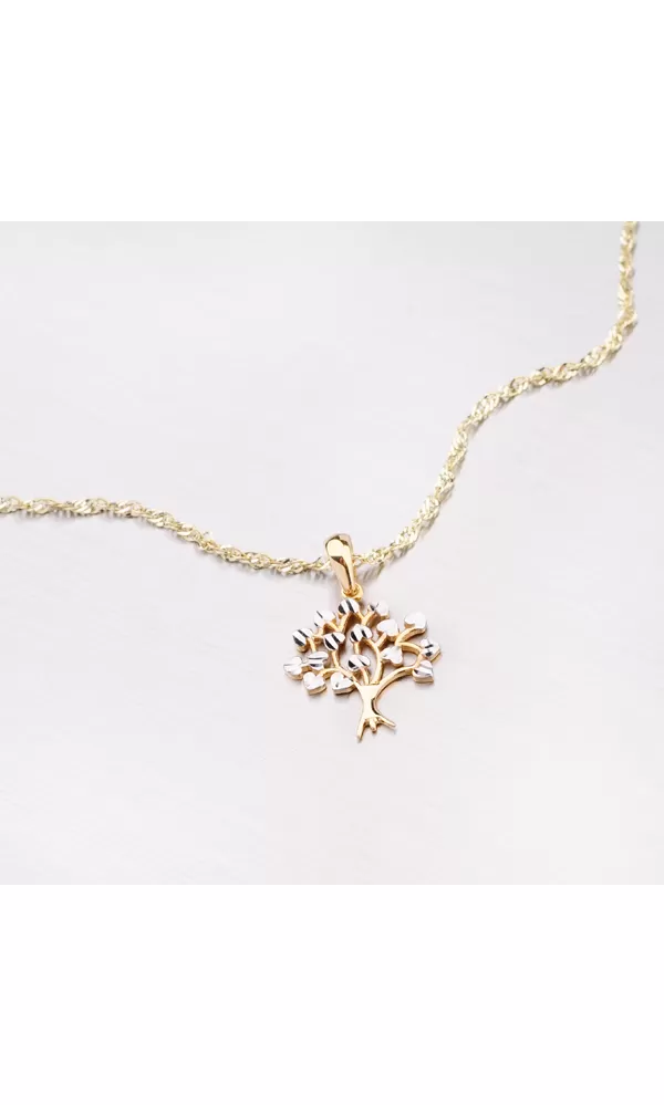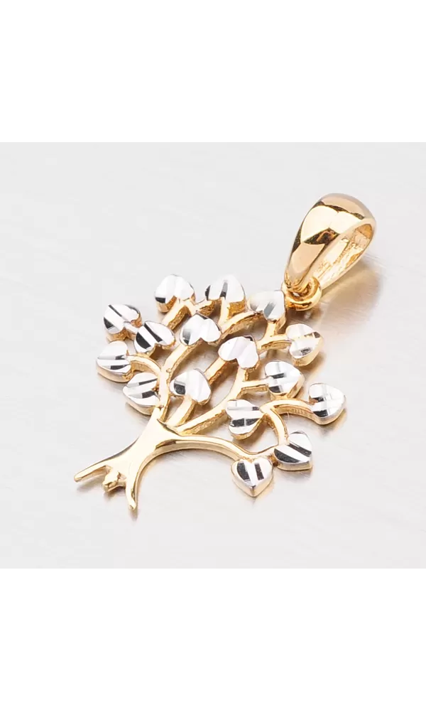Máte rada prírodu a túžite nosiť jej kúsok aj na svojom tele? To tu máme presne pre vás tento prívesok v tvare stromu, ktorého listy sú srdcového tvaru a upravené gravírovaním. Prívesok je vyrobený zo žltého štrnástich karátového zlata s rýdzosťou 585/1000 v kombinácii žltej a bielej farby s lesklou povrchovou úpravou.