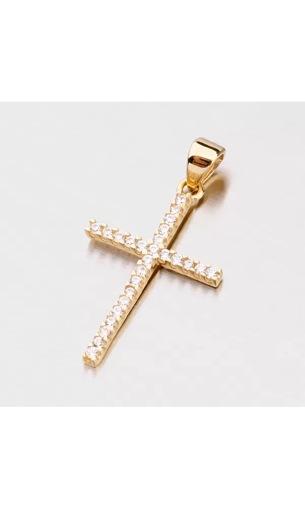 Kríž zo žltého zlata so zirkónmi 142-0598
