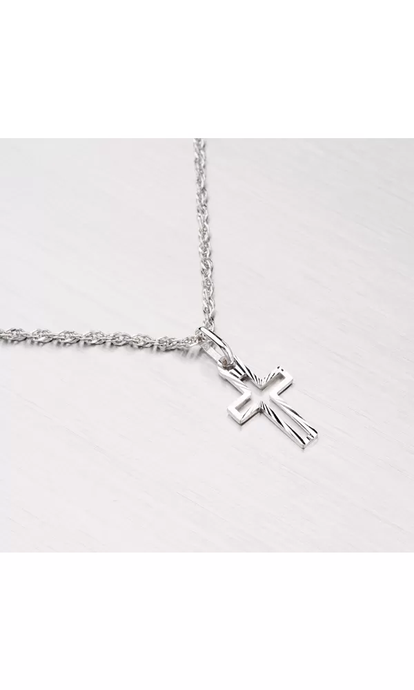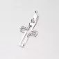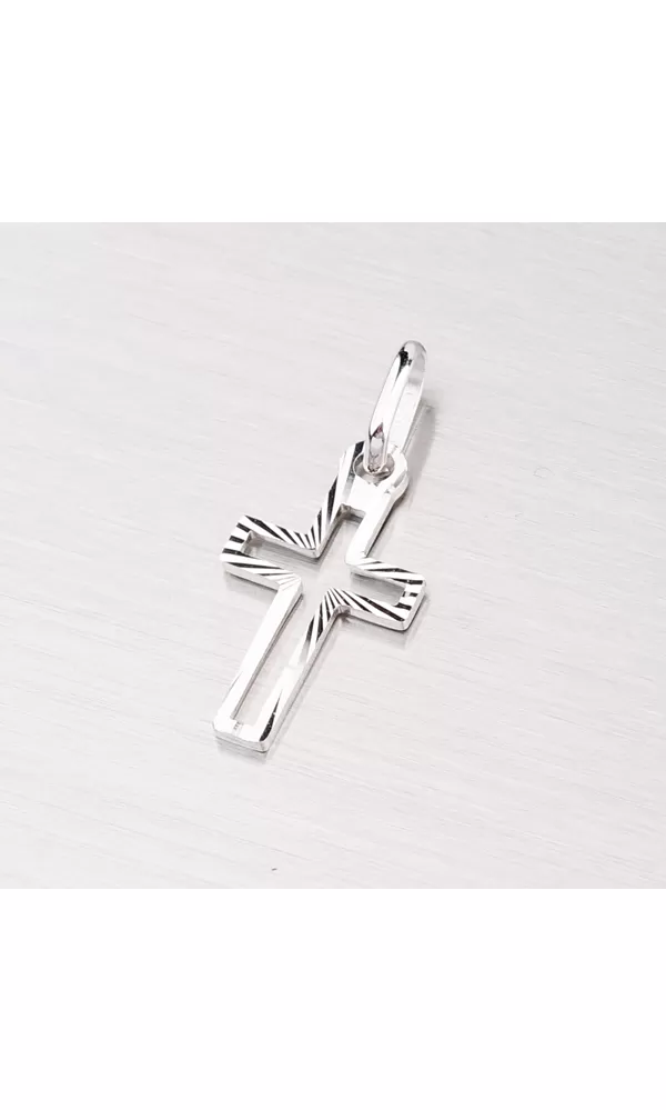 Tento nový prívesok v tvare krížika je vyrobený z bieleho štrnásťkarátového zlata 585/1000 v lesklej povrchovej úprave. Prívesok je obojstranný, z jednej strany je gravírovaný diamantovým nástrojom, ktorý dodáva gravírovaniu maximálny lesk az druhej strany je krížik hladký a lesklý.
