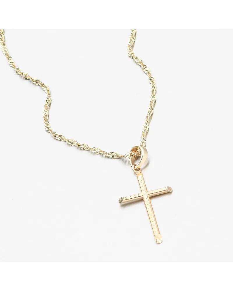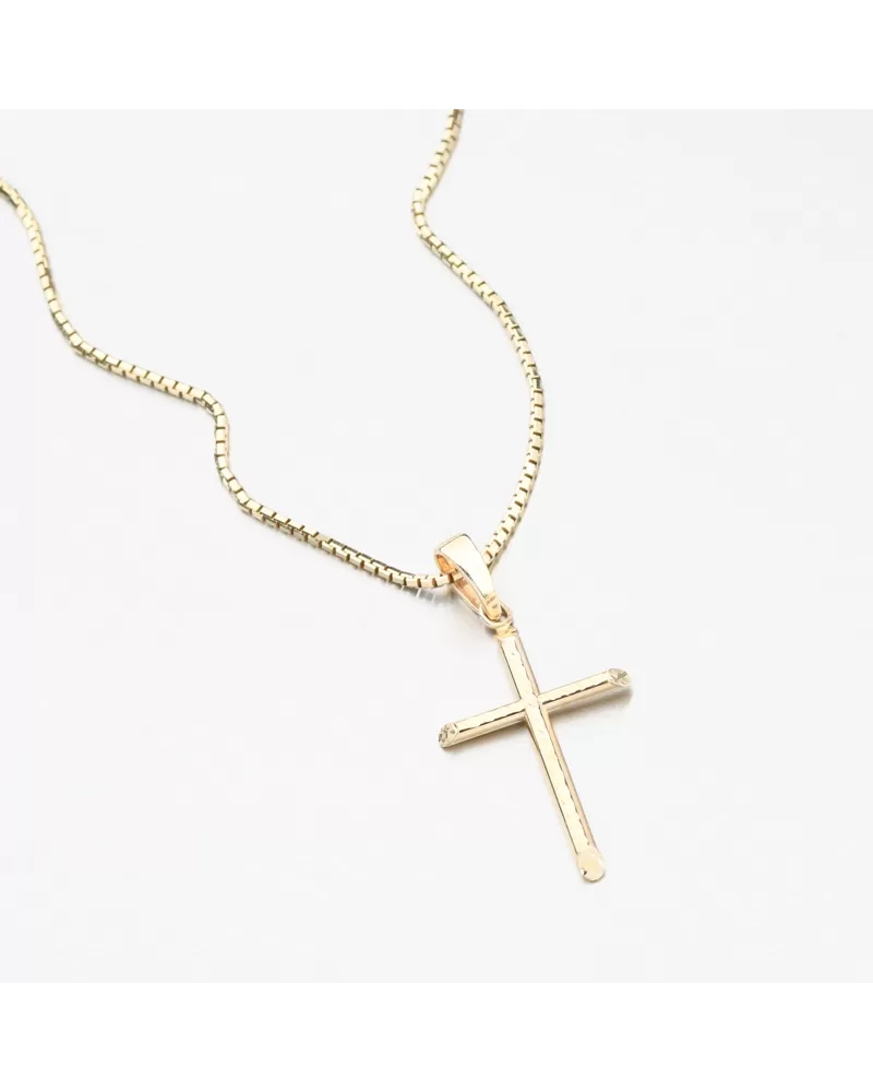 Decentný zlatý prívesok v tvare kríža zaujme spracovaním a možnosťou obojstranného nosenia. Na jednej strane je kríž po celej ploche zdobený fazetami. Fazety sú lesklé povrchy vyrobené pomocou diamantového hrotu a dodávajú šperku maximálny lesk a brilanciu zo všetkých uhlov. Na druhej strane nájdete hladký kríž vo vysokom lesku len v žltom zlate. Obľúbený symbol kresťanstva, ktorý má okrem duchovného významu aj estetickú funkciu.