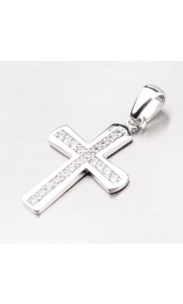 Prívesok z bieleho zlata v tvare kríža 43-21347