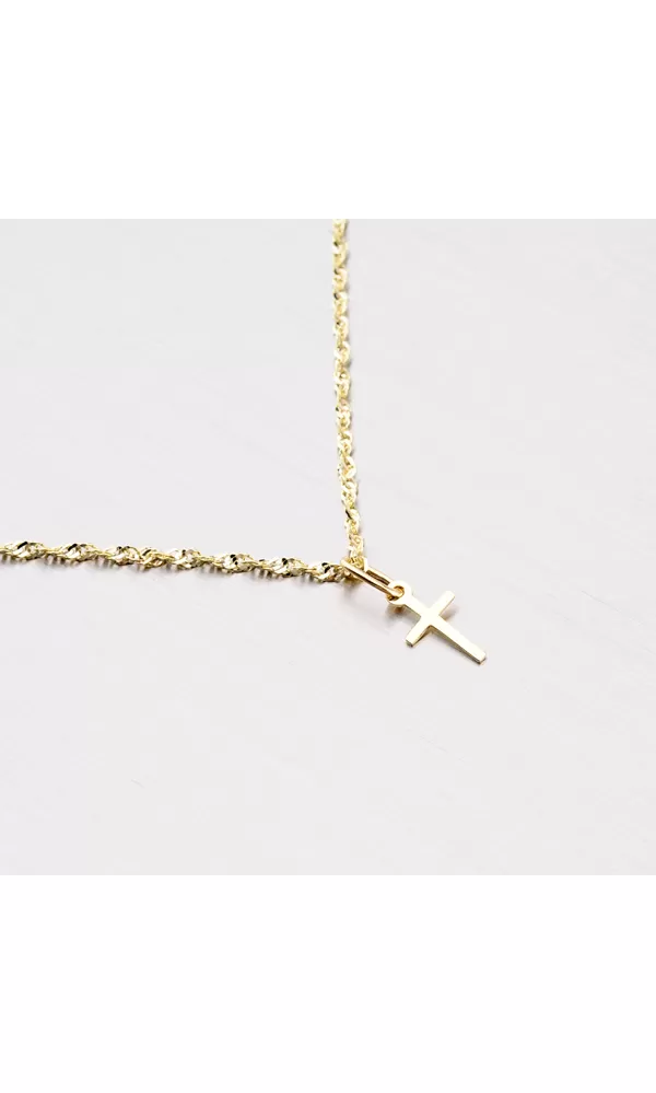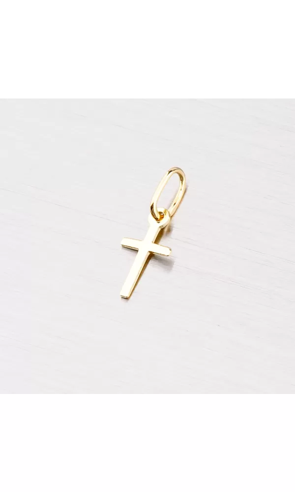 Krásny jemný prívesok v tvare kríža vyrobený zo žltého štrnásťkarátového zlata 585/1000 v lesklej povrchovej úprave.