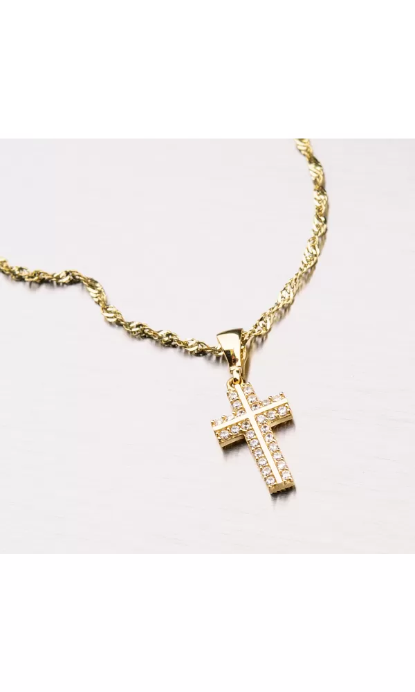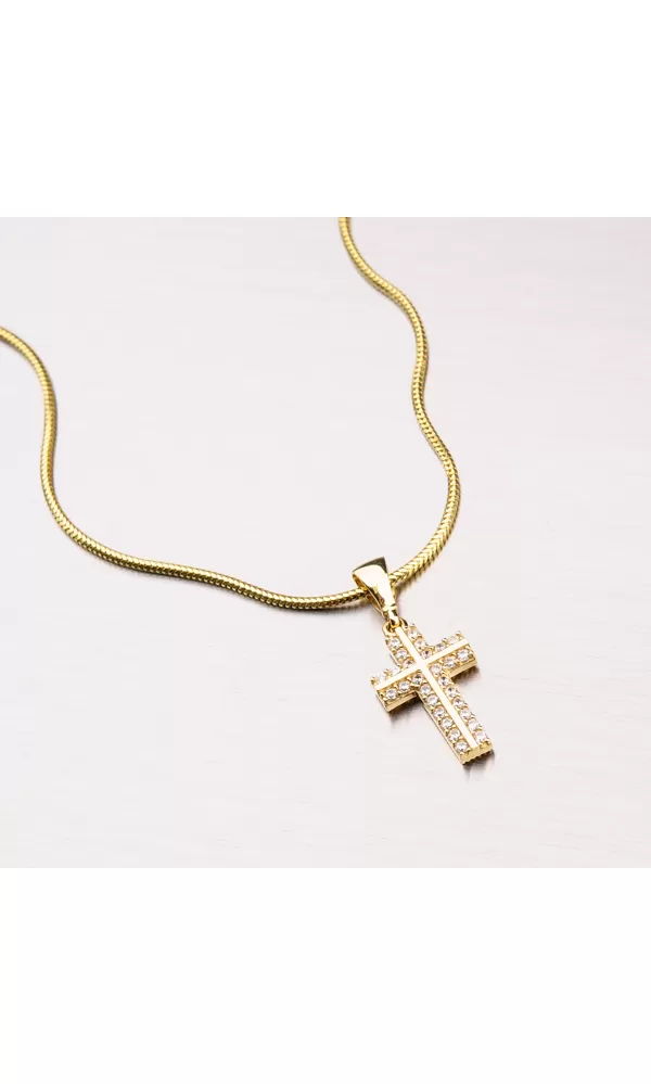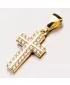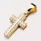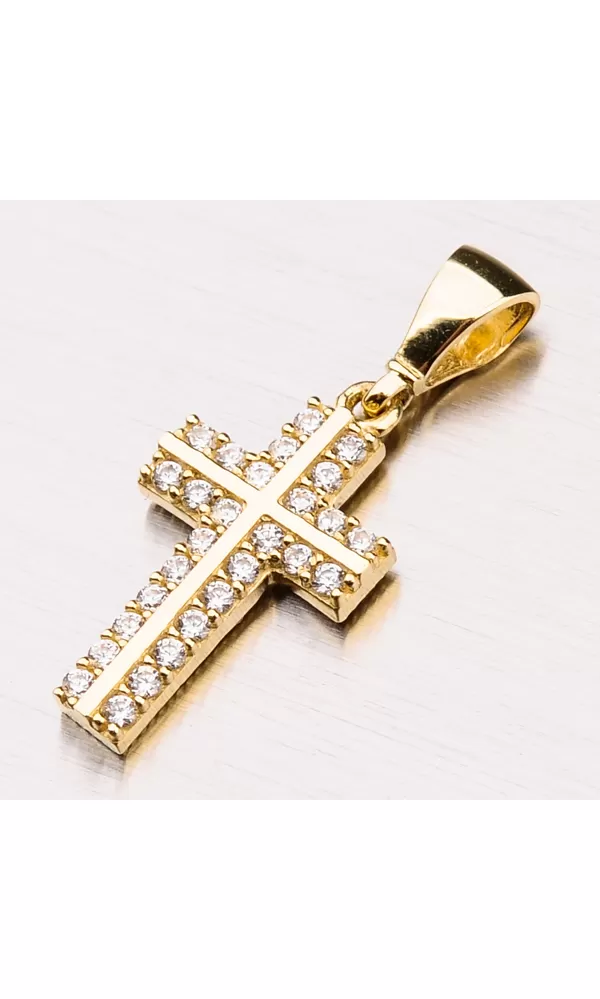Ďalší očarujúci model kríža pre vás vyrobili naši šikovní zlatníci. Krásny prívesok je vyrobený zo žltého zlata o rýdzosti 585/1000 v lesklej povrchovej úprave. Prívesok je zdobený trblietavými zirkónmi v briliantovom bruse, ktoré dokonale odráža svetlo a vytvára neodolateľný lesk. K tomuto prívesku je vhodná retiazka o šírke 1,25 mm.