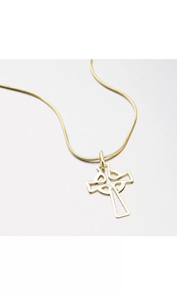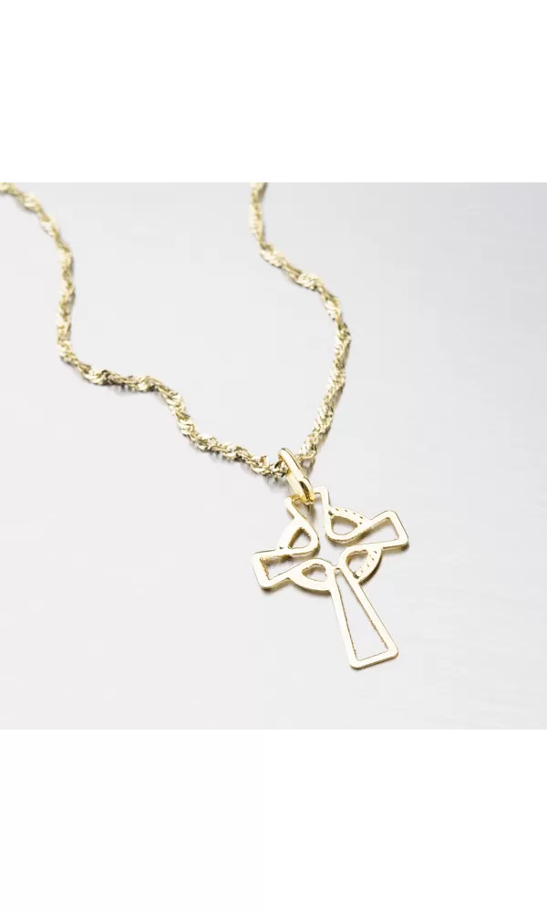 Zlatý kríž je vyrobený zo žltého štrnásťkarátového zlata 585/1000 v lesklej povrchovej úprave. Kríž je zdobený gravírovaním pomocou diamantového hrotu, vďaka ktorému získa šperk maximálny lesk a brilanciu zo všetkých uhlov.