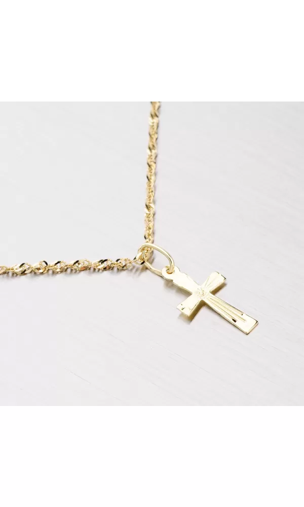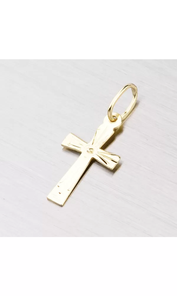 Kríž je vyrobený zo žltých štrnástich -karátových zlatých 585/1000 v lesklom povrchu. Kríž je zdobený gravírovaním. Pre tento prívesok je možné použiť reťaz s maximálnym priemerom 2,75 mm.