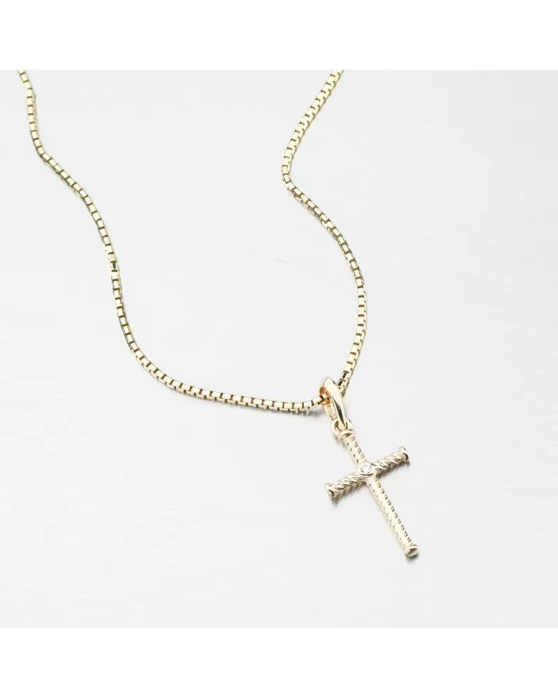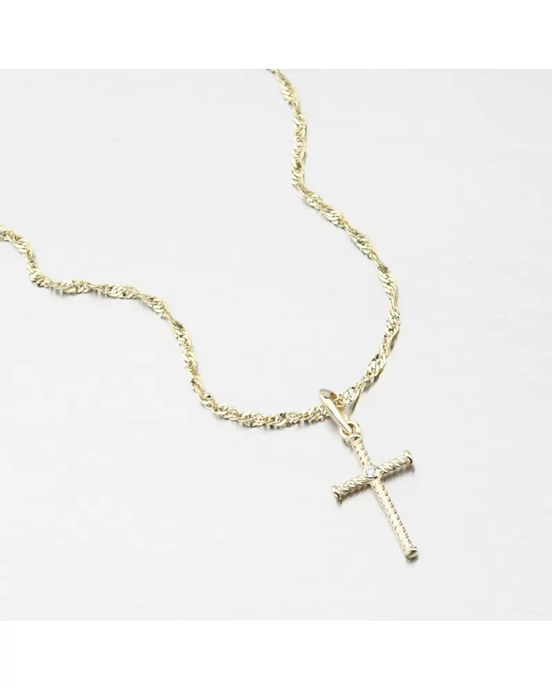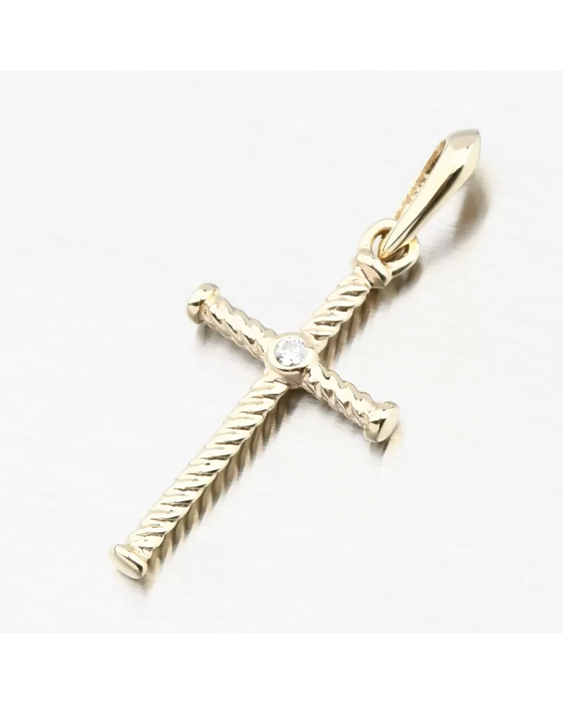 , ale veľmi sofistikovaný šperk vo forme zlatého kríža, dokonale zdobí dekolt žien a mužov. Kríž je rybárskym povrchom a je zdobený zirkónom v brilantnom strihu, ktorý sa vkladá uprostred šperku. Brilantná Skore poskytuje maximálnu brilanciu pozemnej stránky, dokonale odráža svetlo a neuveriteľne svieti zo všetkých pohľadov.