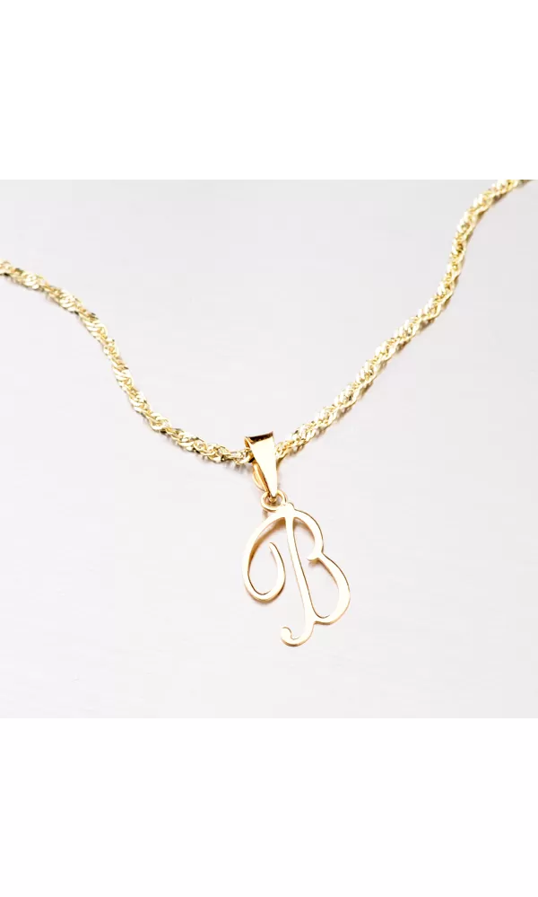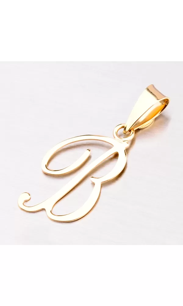 Prívesok v tvare písmenka B je vyrobený zo žltého štrnásťkarátového zlata 585/1000. Prívesok je vyrobený v lesklej povrchovej úprave a kombinácii písacieho a tlačeného písma. Na doplňujúcich fotografiách je prívesok vidieť na retiazke:  44-1028 a  44-1137 , alebo ďalej môžete vyberať v celej kategórii  zlatých retiazok.
